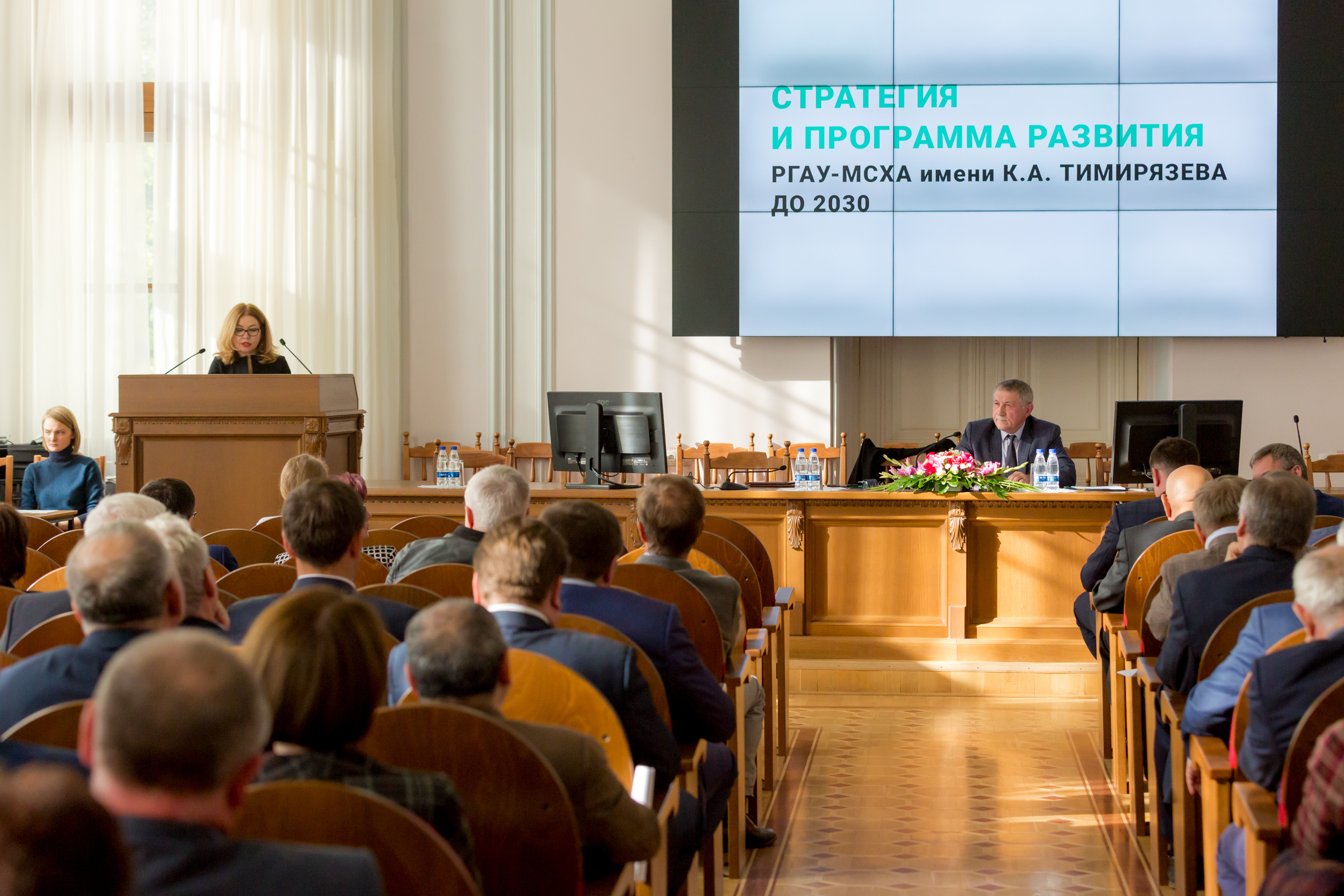 «Стратегической целью вуза является создание на его базе федерального многофункционального научно-образовательного центра АПК Российской Федерации, напомнила В.П. Чайка. Стратегией также предусмотрено изменение действующей классической модели вуза, на концепцию Университета, нацеленного на технологическое предпринимательство, - развитие бизнеса и формирование новых рынков. Кроме того, находясь почти в самом центре столицы, Тимирязевка должна быть интегрирована в московскую агломерацию туристической и познавательной средой».