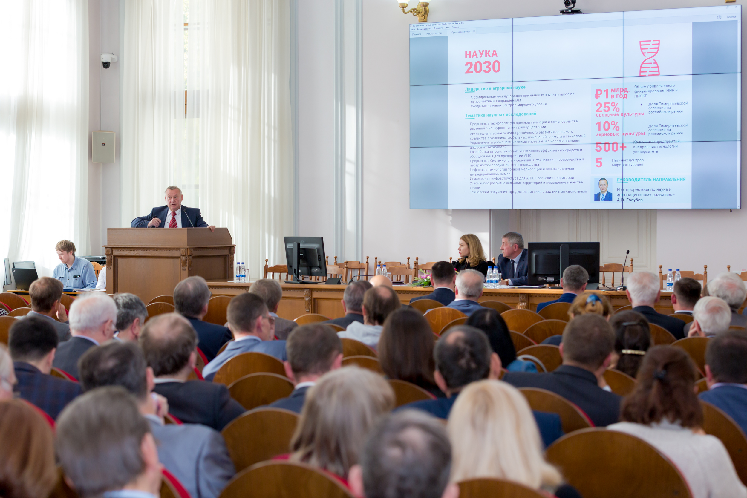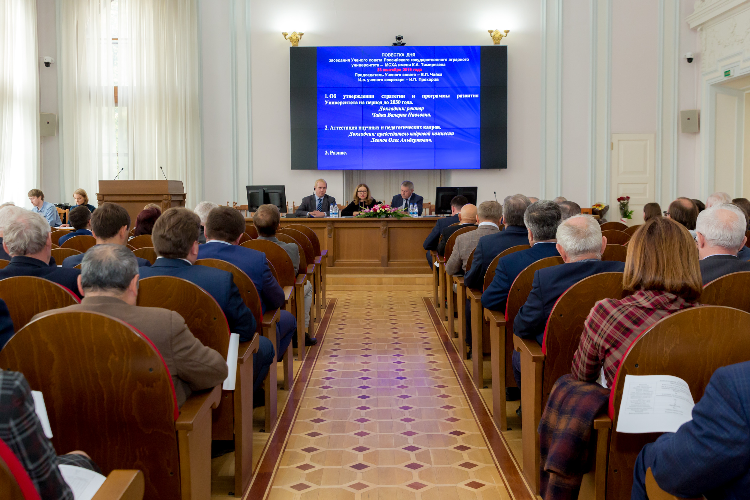 23 сентября в Большом актовом зале прошло очередное заседание Ученого совета Российского государственного аграрного университета имени К.А. Тимирязева. На нем с докладом о Стратегии и Программе развития Университета на период до 2030 года выступила председатель Ученого совета, ректор РГАУ - МСХА Валерия Павловна Чайка.