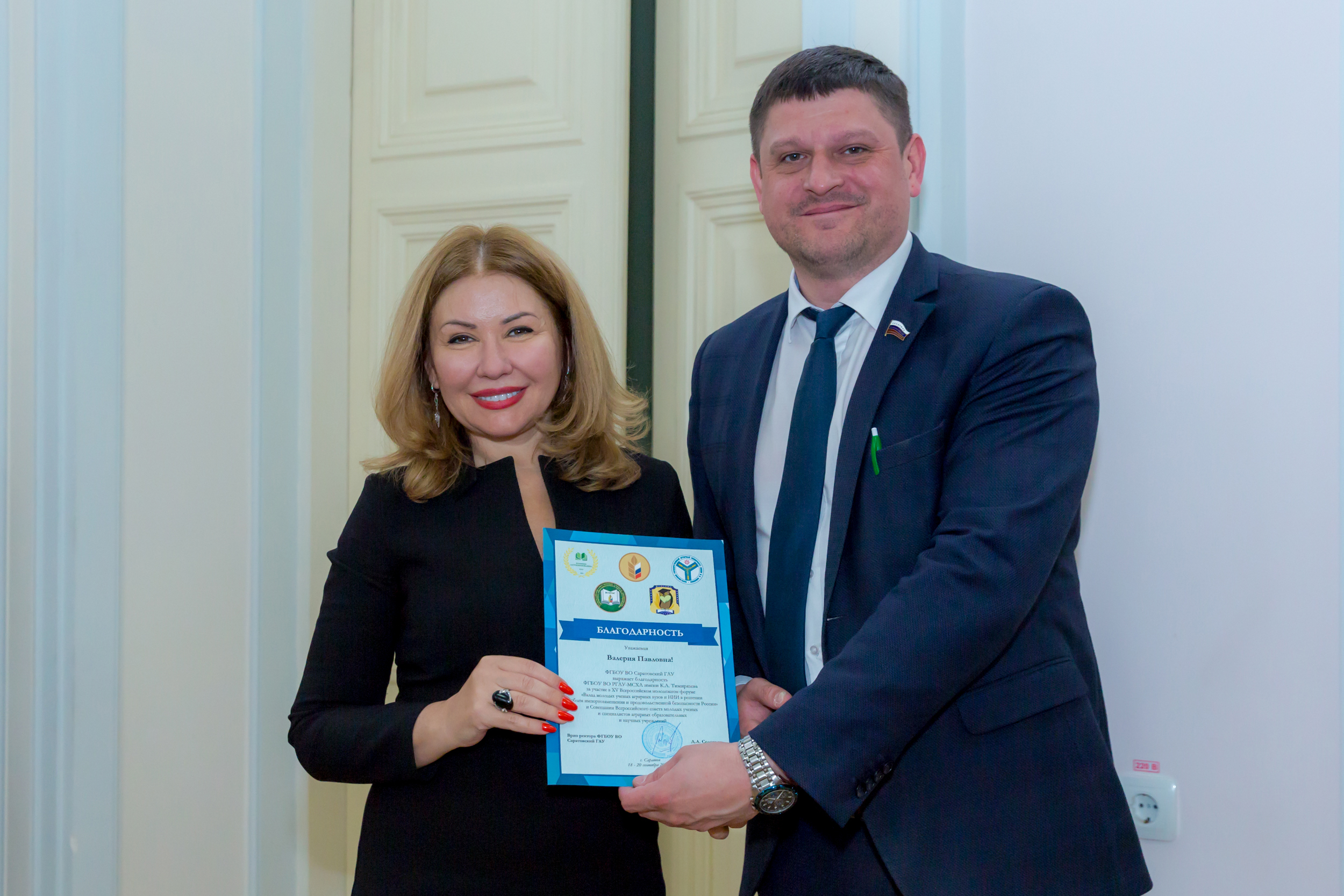 В тот же день ректору РГАУ – МСХА В.П. Чайке была вручена Благодарность от Саратовского ГАУ «за участие в XV Всероссийском молодежном форуме «Вклад молодых ученых аграрных вузов и НИИ в решении проблем импортозамещения и продовольственной безопасности в России» и Совещании Всероссийского совета молодых ученых и специалистов аграрных образовательных и научных учреждений».