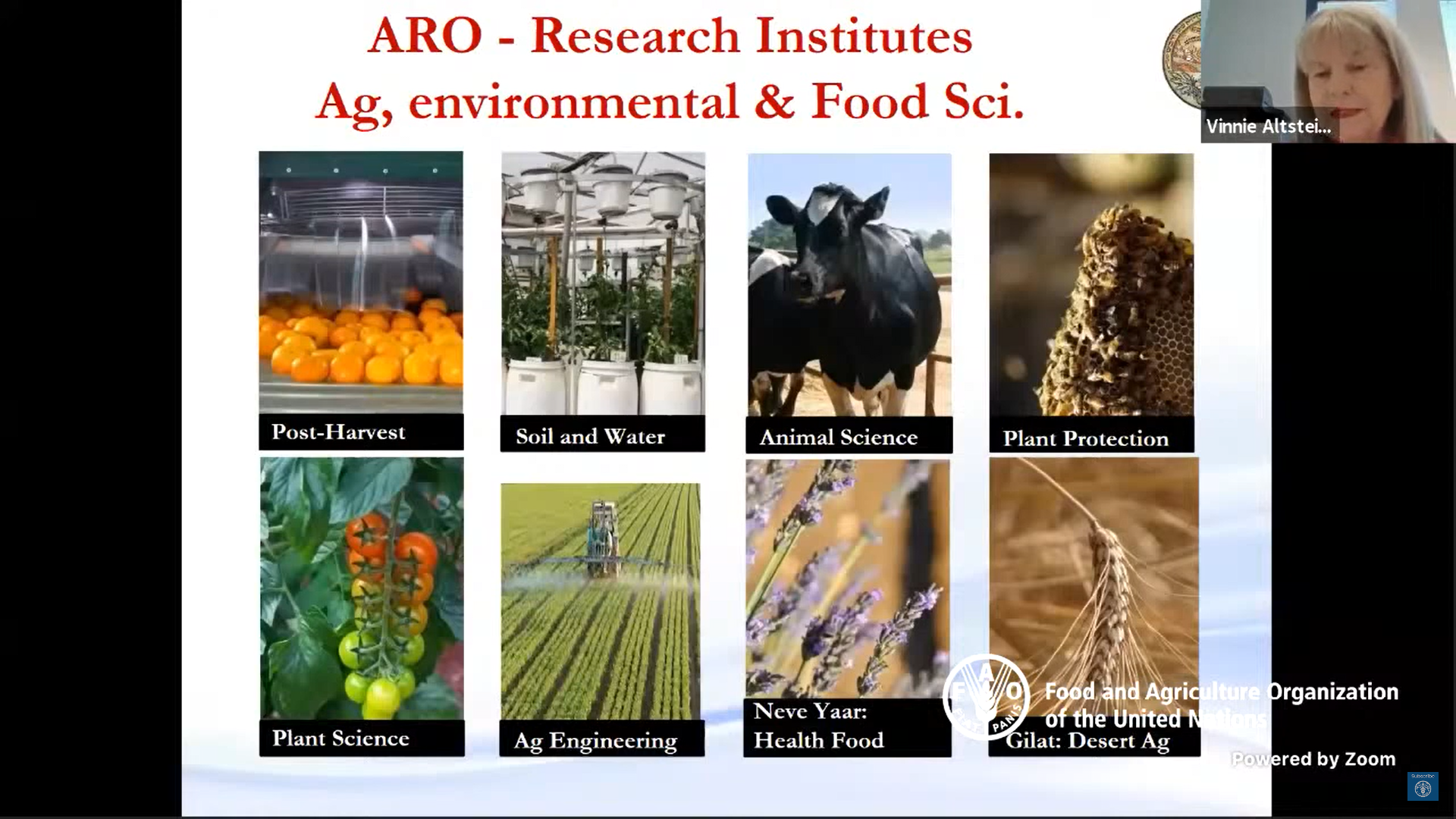 Докладчиками вебинара выступили руководитель отдела развития сельских районов, продовольственной безопасности и питания Генерального директората по международному сотрудничеству и развитию Европейской комиссии Леонард Мицци, генеральный директор Международного центра биосолевого сельского хозяйства в Дубае Исмахане Элуафе, нейрохимик, директор по академическим вопросам Центра имени Волкани израильской Организации сельскохозяйственных исследований Винни Альтштейн.