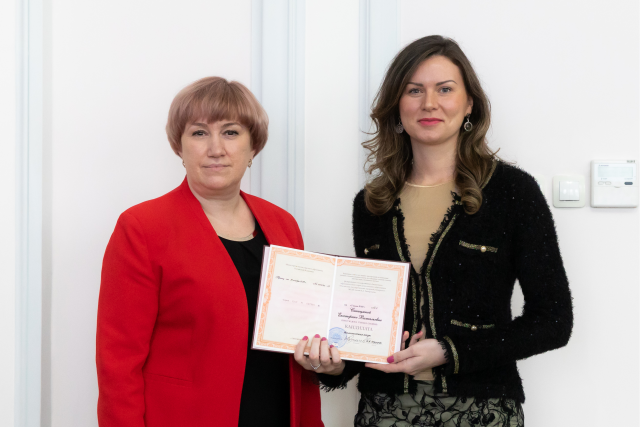 Документ кандидата экономических наук получила старший преподаватель кафедры бухгалтерского учета, финансов и налогообложения Юлия Александровна Мырксина. Её научный руководитель - кандидат экономических наук, доцент кафедры бухгалтерского учета, финансов и налогообложения Римма Вениаминовна Ливанова.