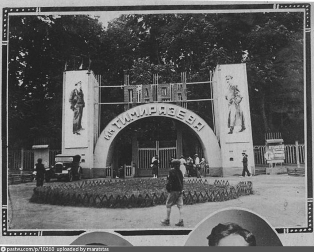 1936 г. Вход в Тимирязевский парк культуры и отдыха. Через эти ворота в июне 1941 года в парк входили добровольцы.
