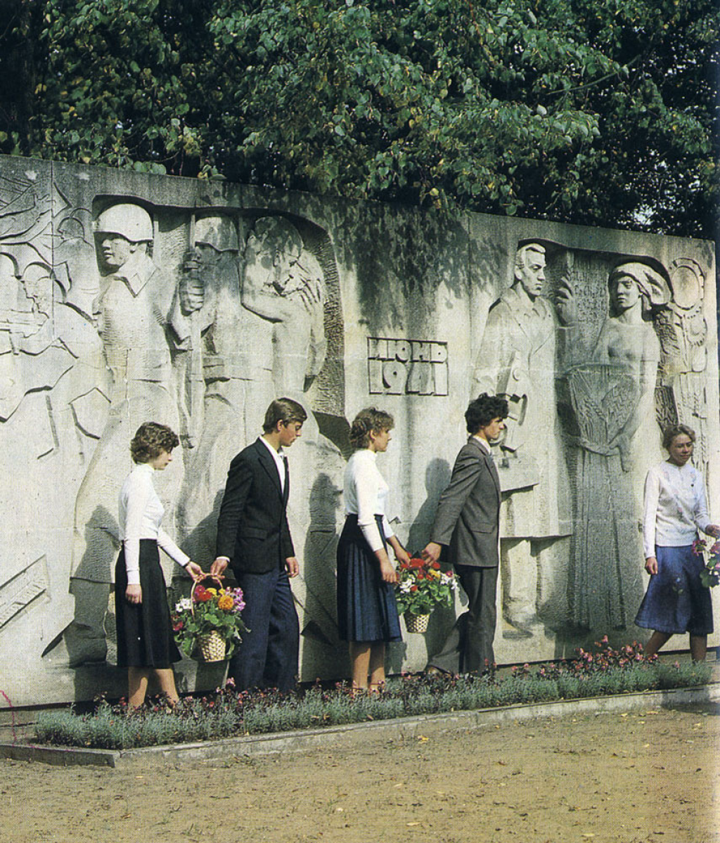 Другая - большая стена, на которой изображены – работа в тылу, сражения на фронте уход добровольцев и радость победы и две даты 1941-1945 годы и сам мемориал, где указаны фамилии тех, кто ушел на фронт и не вернулся. Этот мемориал, созданный к двадцатилетию победы и столетию основания вуза, именно и поставили на этом месте, где изначально, с первых дней войны, собирались те люди, которые навсегда ушли и не вернулись назад.