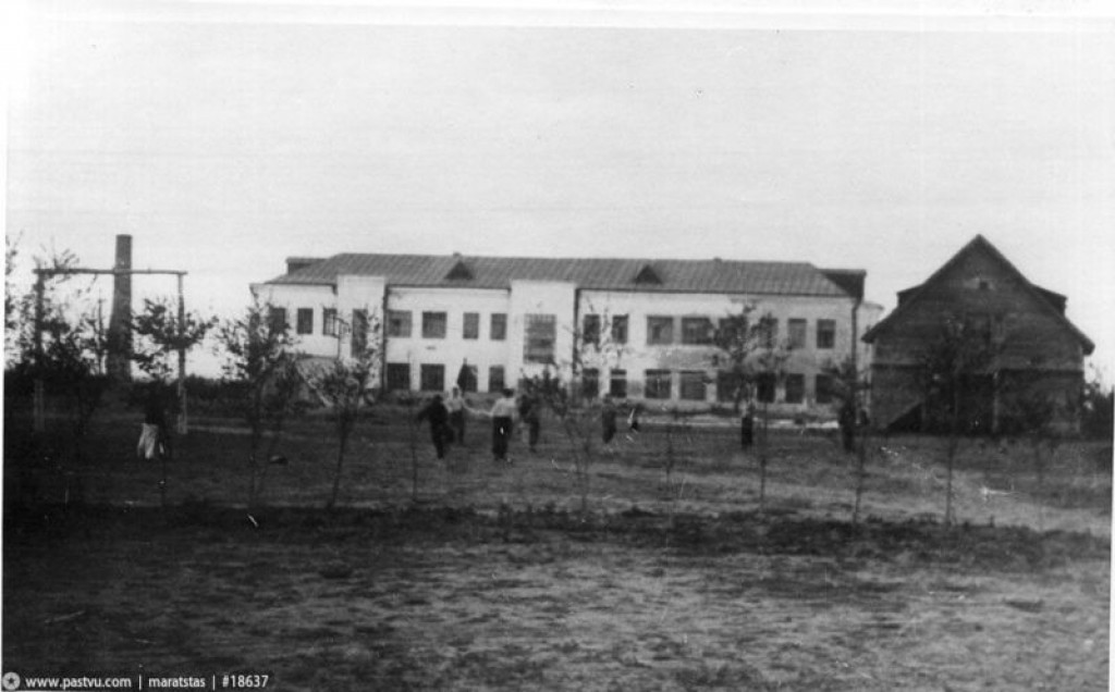 Памятник установили на второй год после победы. За ним видна ограда, ни ворот, никаких указателей. Вот это и было место, где находились две калитки, и именно здесь разворачивался сбор добровольцев, призывников, трудовых батальонов, направлявшихся на земляные работы и рытье окопов, в дальнейшем коммунистического и истребительного батальонов.