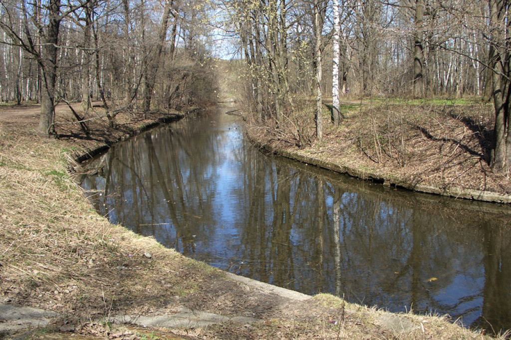Река имеет правый рукав, огибающие с востока и юга холм, и соединяющийся, с материнским руслом через систему Фермских прудов в районе 37 корпуса.