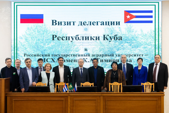 РГАУ-МСХА имени К.А. Тимирязева посетила кубинская делегация во главе с первым вице-президентом группы «Biocuba Farma» и депутатом Национальной Ассамблеи Республики Куба Эулогио Пиментель Васкес. Стороны обсудили возможность реализации ряда научно-исследовательских проектов, а также обучение кубинских граждан на различных направлениях подготовки университета.