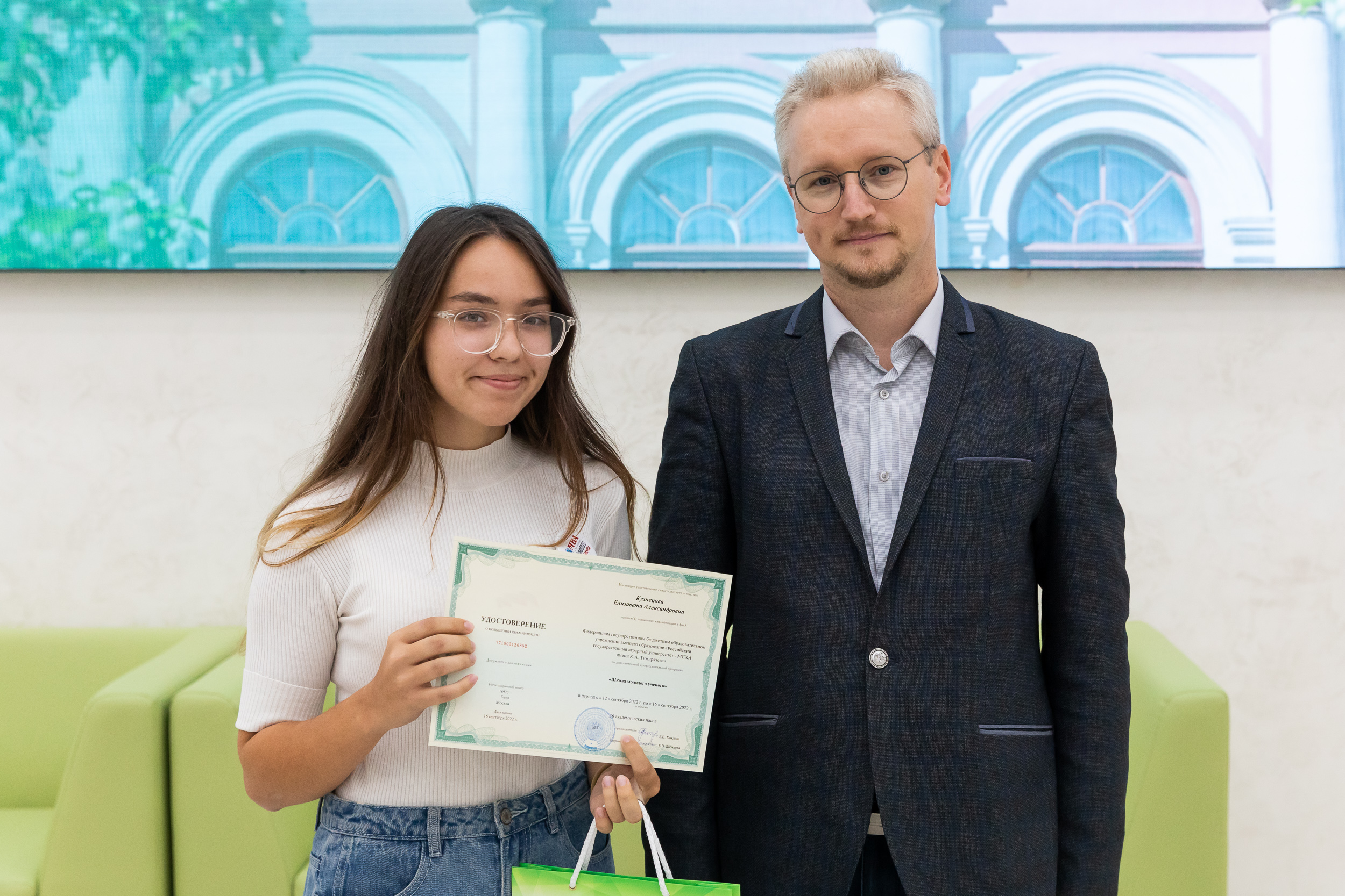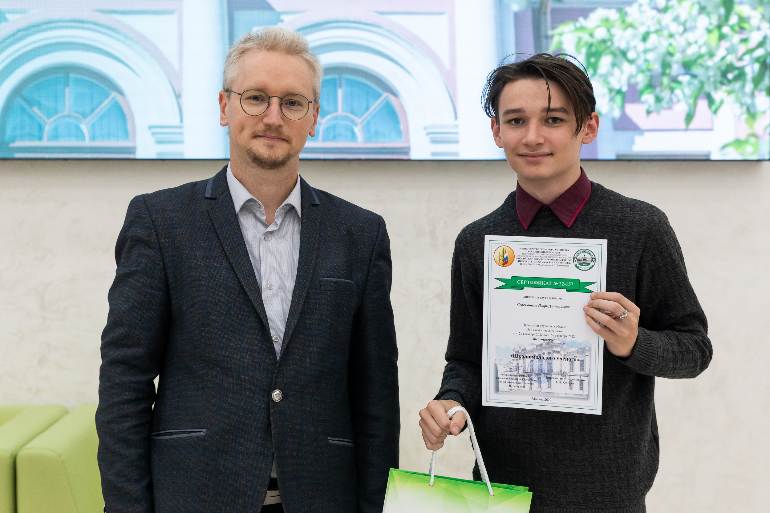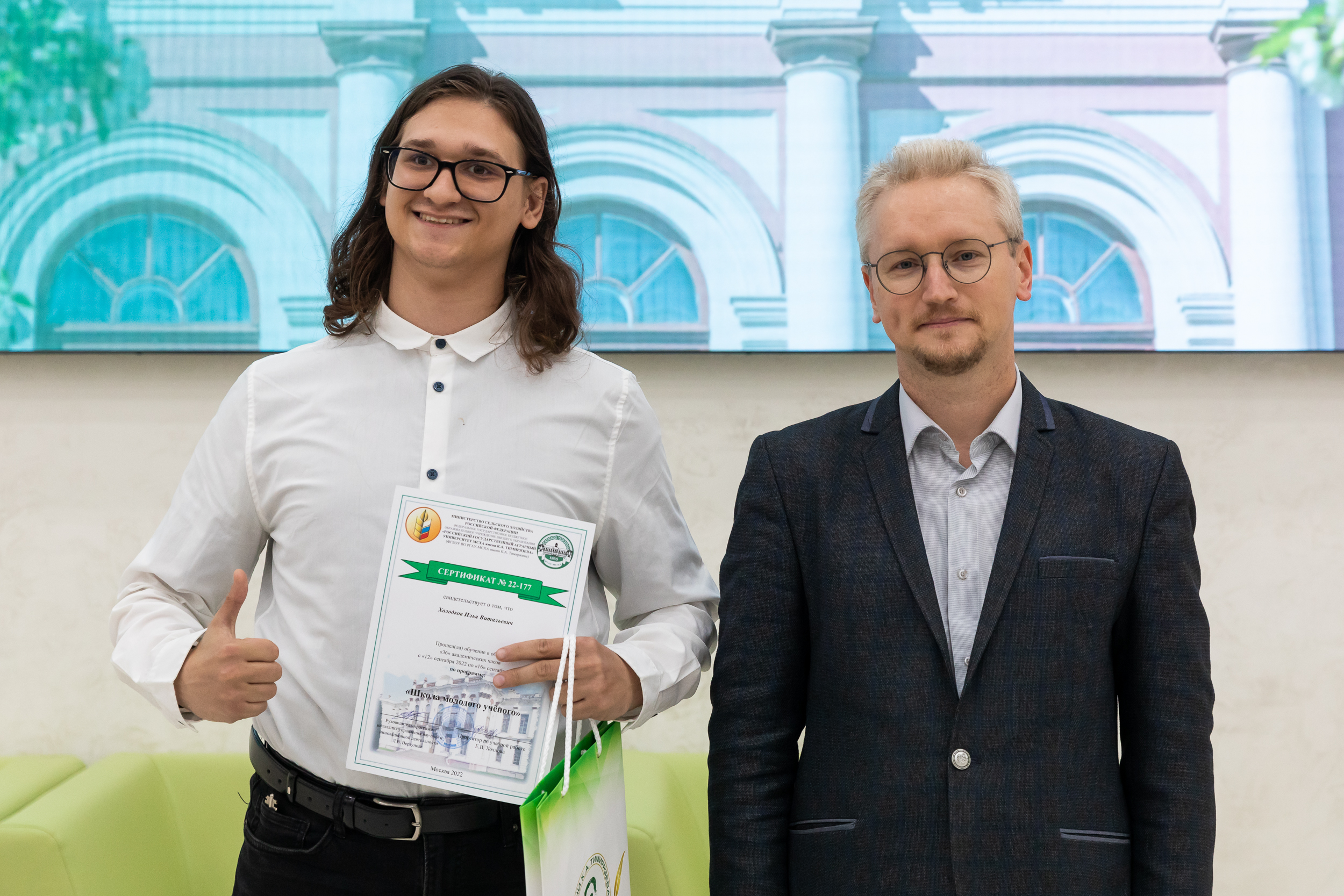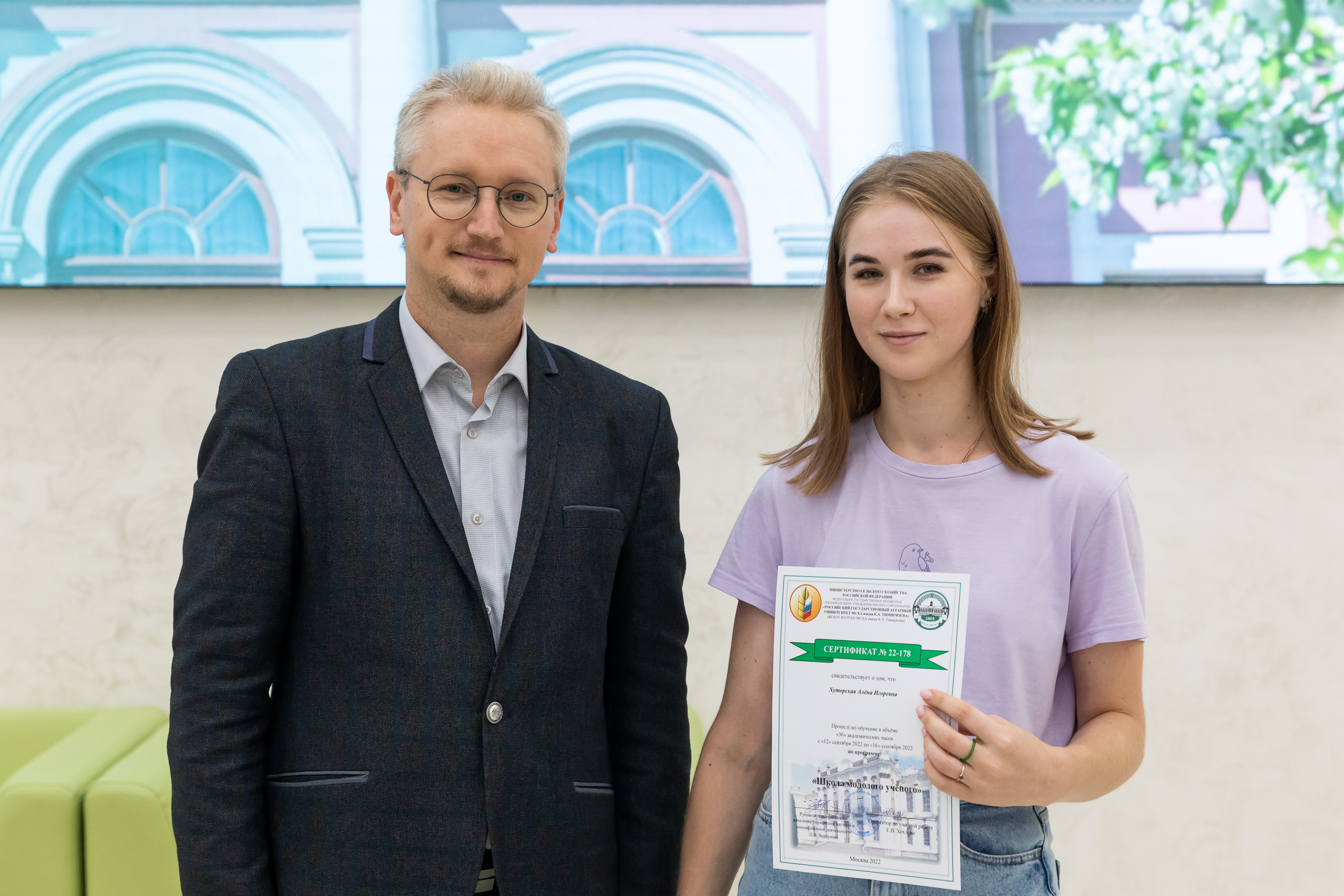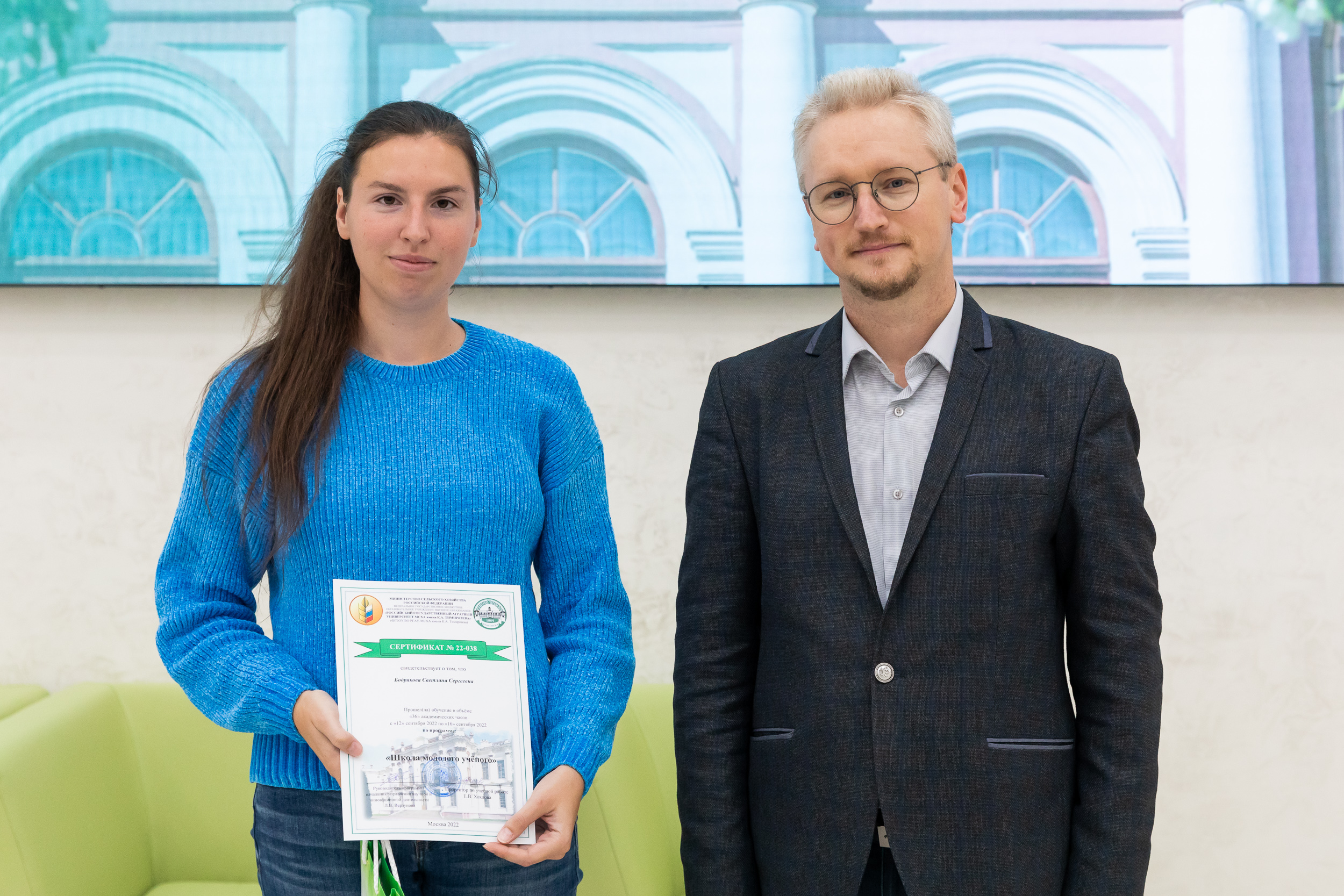 20 Сентябрь / 2022От имени ректора, Академика РАН, профессора Владимира Ивановича Трухачева с завершением первой Школы молодого ученого участников поздравил советник при ректорате – заместитель проректора по науке Иван Юрьевич Свинарев. Он вручил почетные награды студентам, которые успешно освоили курс.