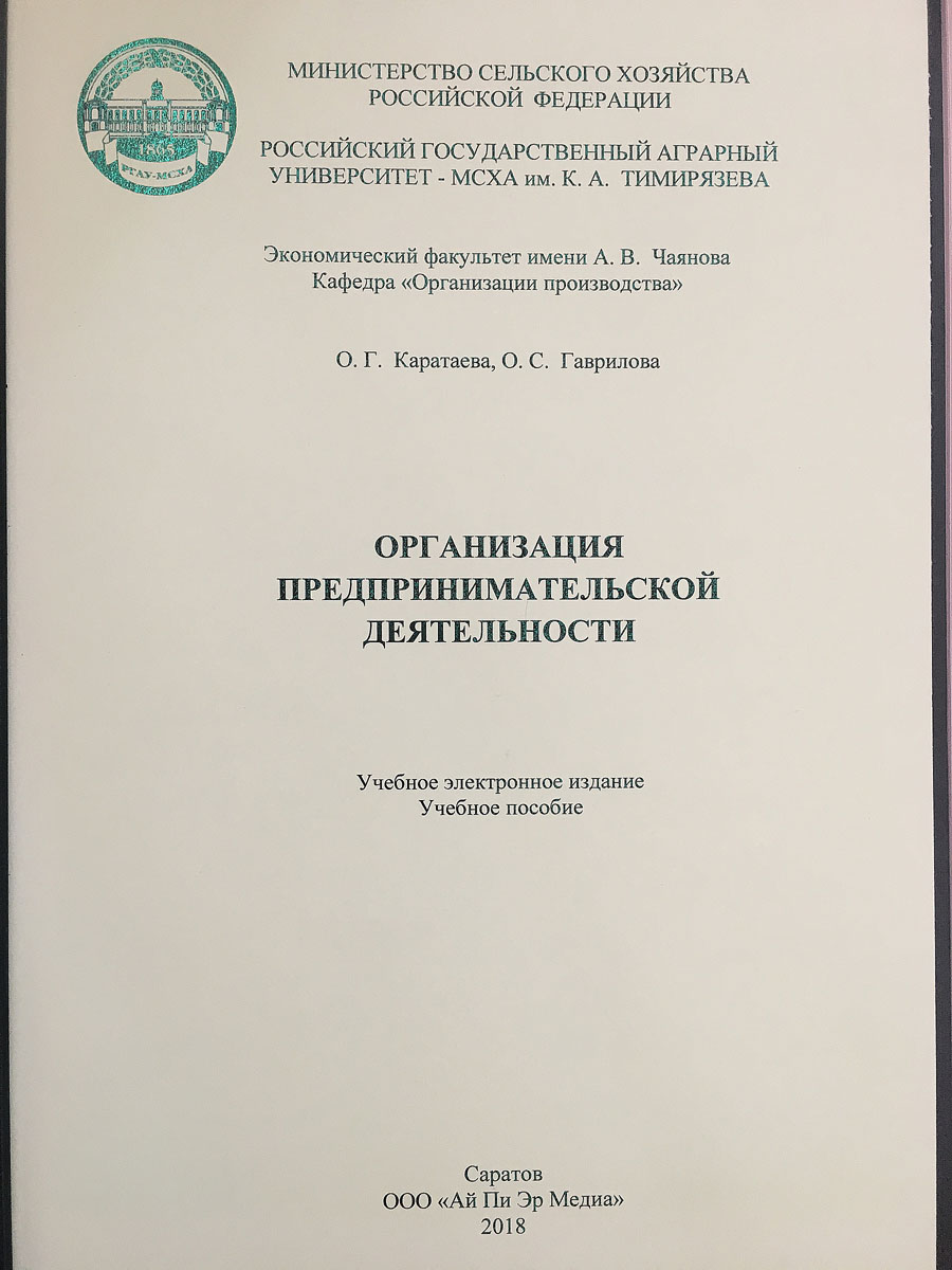 27 Март / 2018Успех тимирязевцам принесло учебное электронное пособие «Организация предпринимательской деятельности», предназначенное для бакалавров очного отделения, обучающихся по направлению 38.03.01 «Экономика».