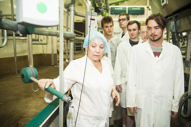 Приятный сюрприз преподнесли сотрудники кафедры автоматизации и механизации животноводства, они оборудовали учебный класс специальными материалами, фрагментом молокопровода и искусственным выменем. Потренировавшись на этих учебных пособиях, студенты овладели навыками этого процесса и изучили технику безопасности. Лишь после этого ребята смогли подойти к коровам и попробовать себя в роли оператора машинного доения.