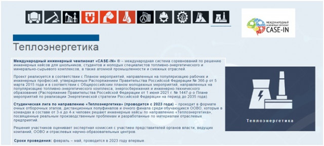 В 2023 году в рамках Студенческой лиги Международного инженерного чемпионата «CASE-IN» впервые будет реализовано новое направление «Теплоэнергетика»