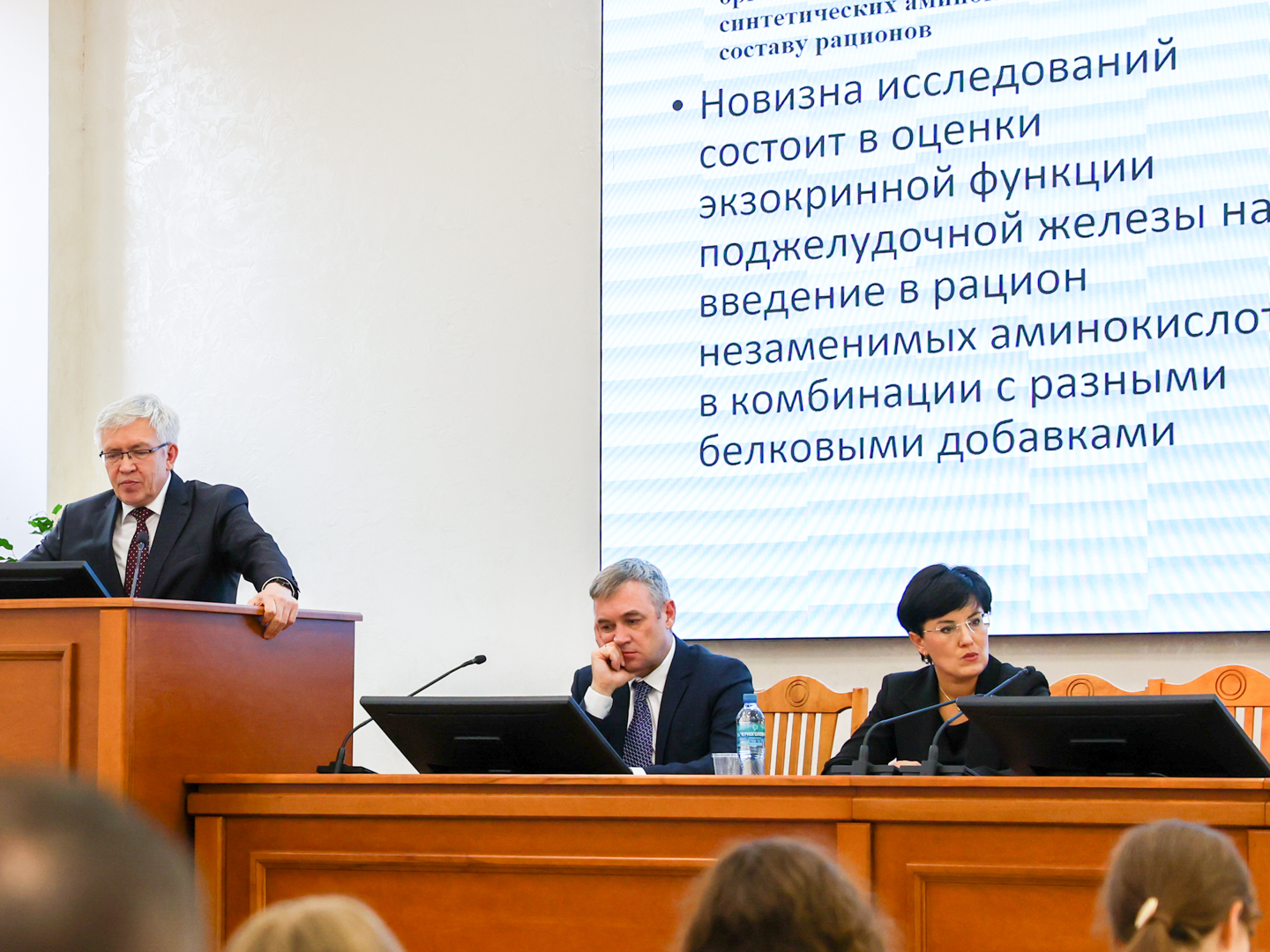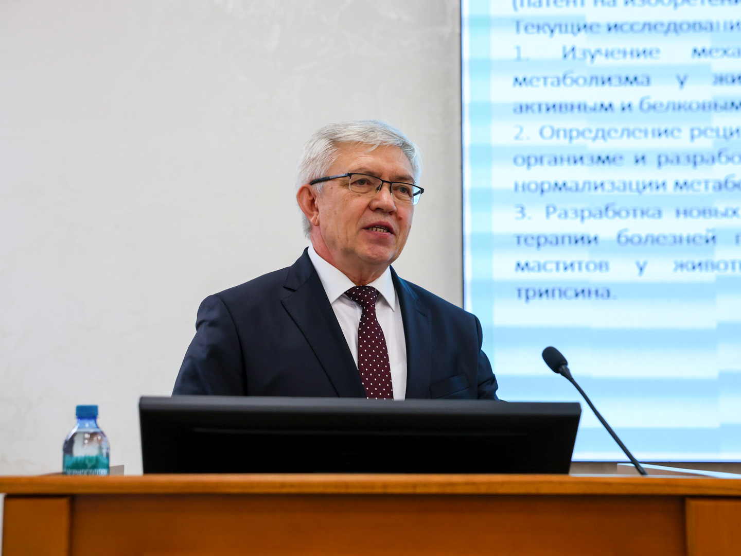 В рамках пленарного заседания выступил заведующий кафедрой физиологии, этологии и биохимии животных Владимир Георгиевич Вертипрахов с докладом «Достижения и перспективы научной школы кафедры физиологии, этологии и биохимии животных». Актуальную тему «Физиологические основы питания молочного скота» осветил профессор, директор Всероссийского научно-исследовательского института физиологии, биохимии и питания животных – филиала ФГБНУ «Федеральный Исследовательский Центр животноводства – ВИЖ имени академика Л.К. Эрнста» Евгений Леонидович Харитонов. С темой «Минеральное питание и микробиом: вклад в реализацию генетического потенциала продуктивных животных» выступила Елена Анатольевна Сизова из ФГБНУ «Федеральный научный центр биологических систем и агротехнологий Российской академии наук».