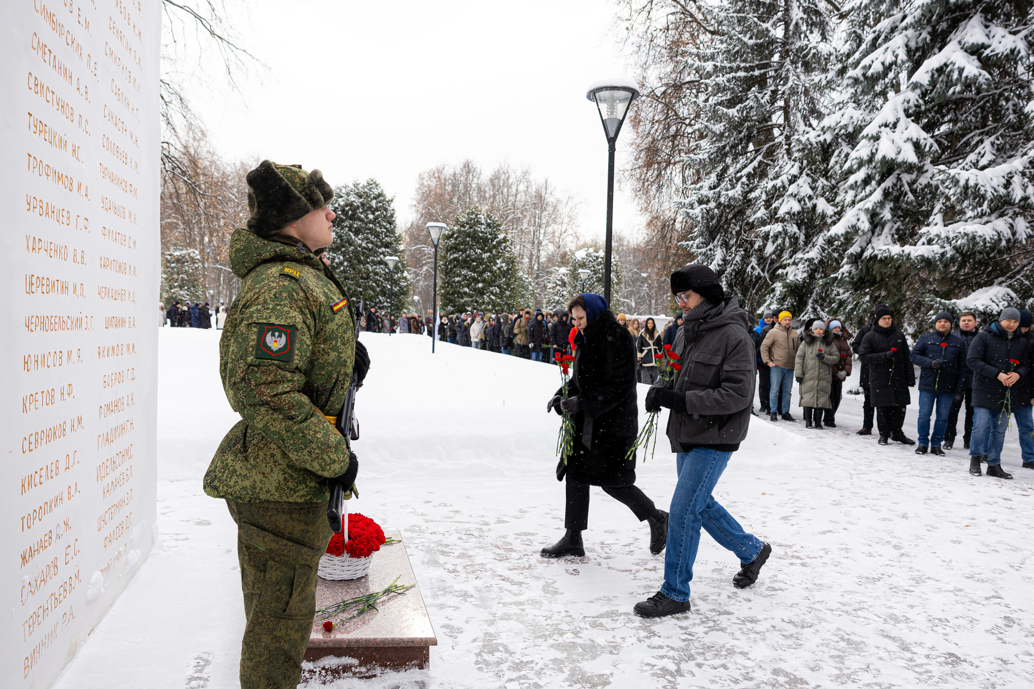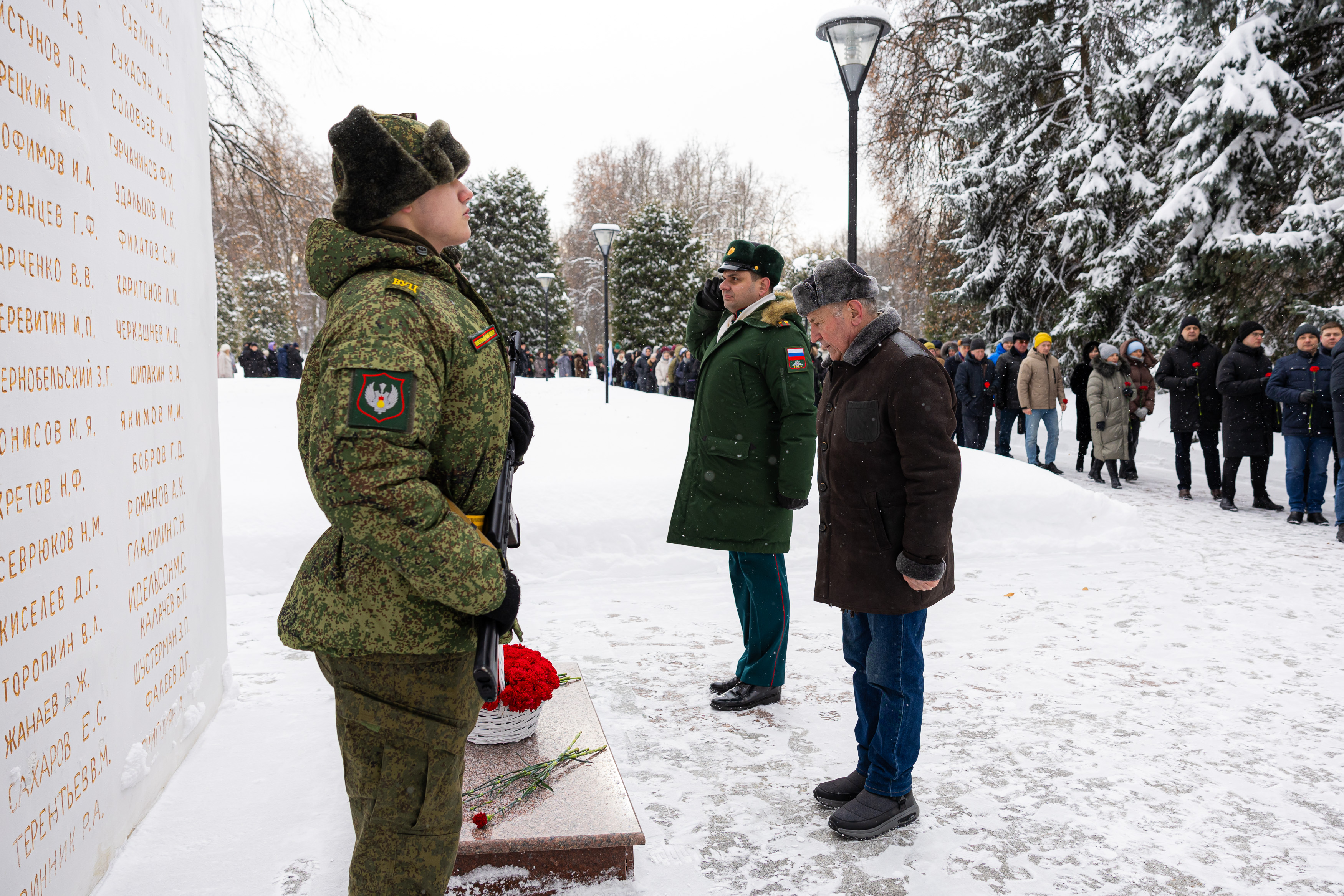 Митинг завершился возложением цветов к мемориалу, символизируя глубокую благодарность и вечную память героям.