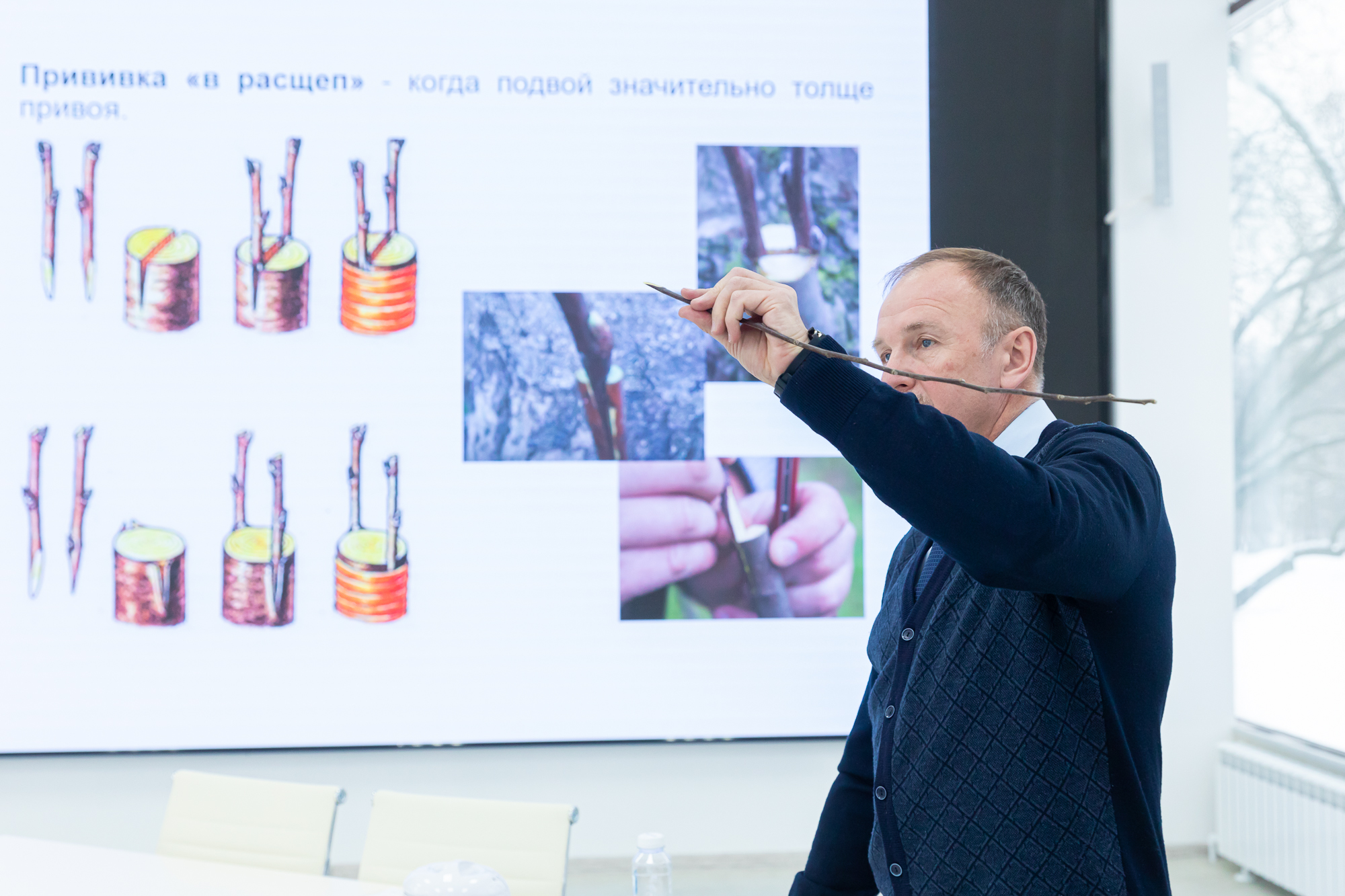 11 Март / 2024На мастер-классе под руководством заведующего кафедрой плодоводства, виноградарства и виноделия Александра Валерьевича Соловьева второкурсники Института садоводства и ландшафтной архитектуры учились проводить прививку плодовых растений черенком.
