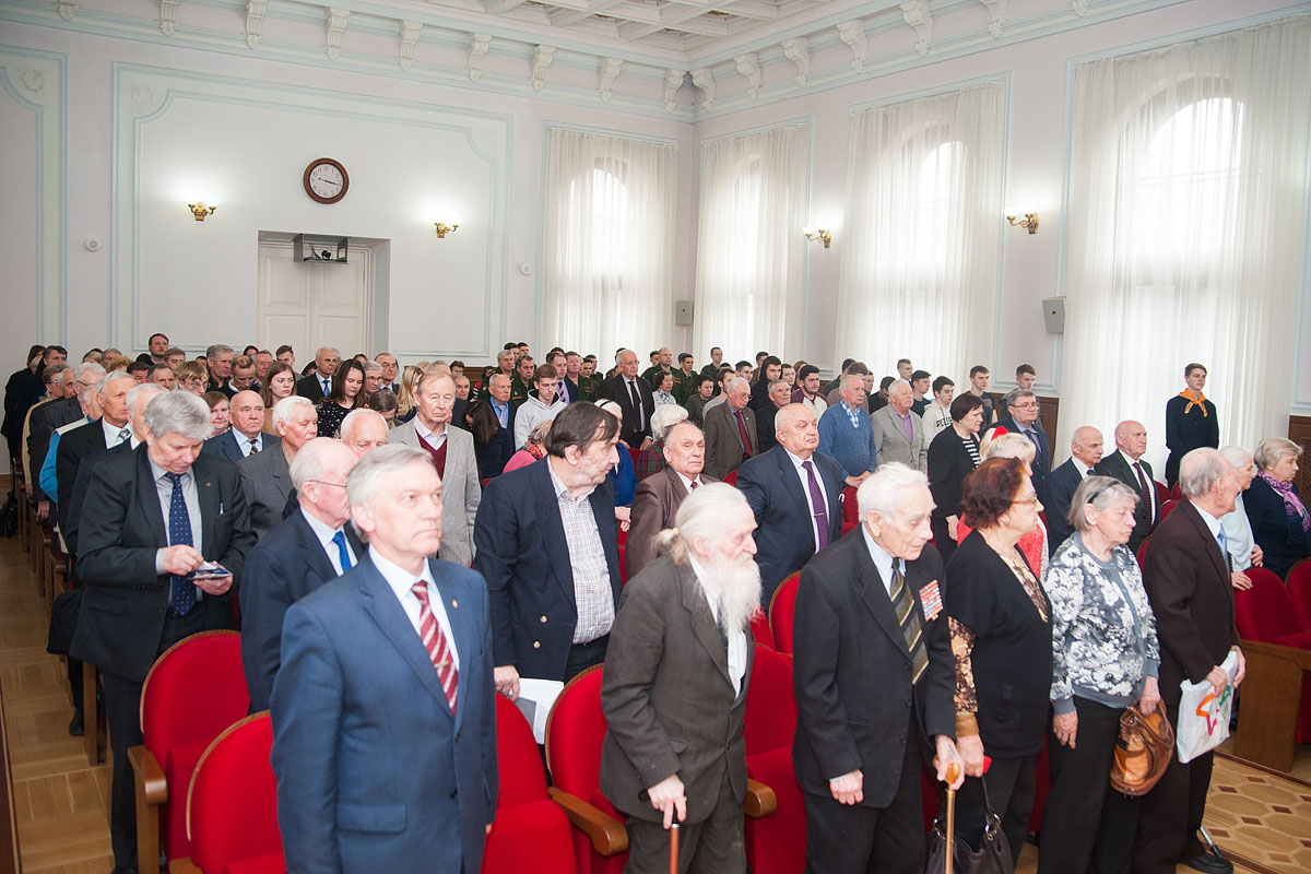 26 Апрель / 2018Холл перед залом заседаний ученого совета стал местом встречи добрых друзей. Ветераны тепло обнимались, улыбались друг другу, интересовались здоровьем и успехами, обсуждали планы на будущее. Поговорить действительно есть о чем. Сегодня ветераны — как признались и ректор академии, и преподаватели, и студенты — движущая сила многих начинаний, хранители традиций, живые легенды, люди, щедро делящиеся с молодежью мудростью и желанием жить.