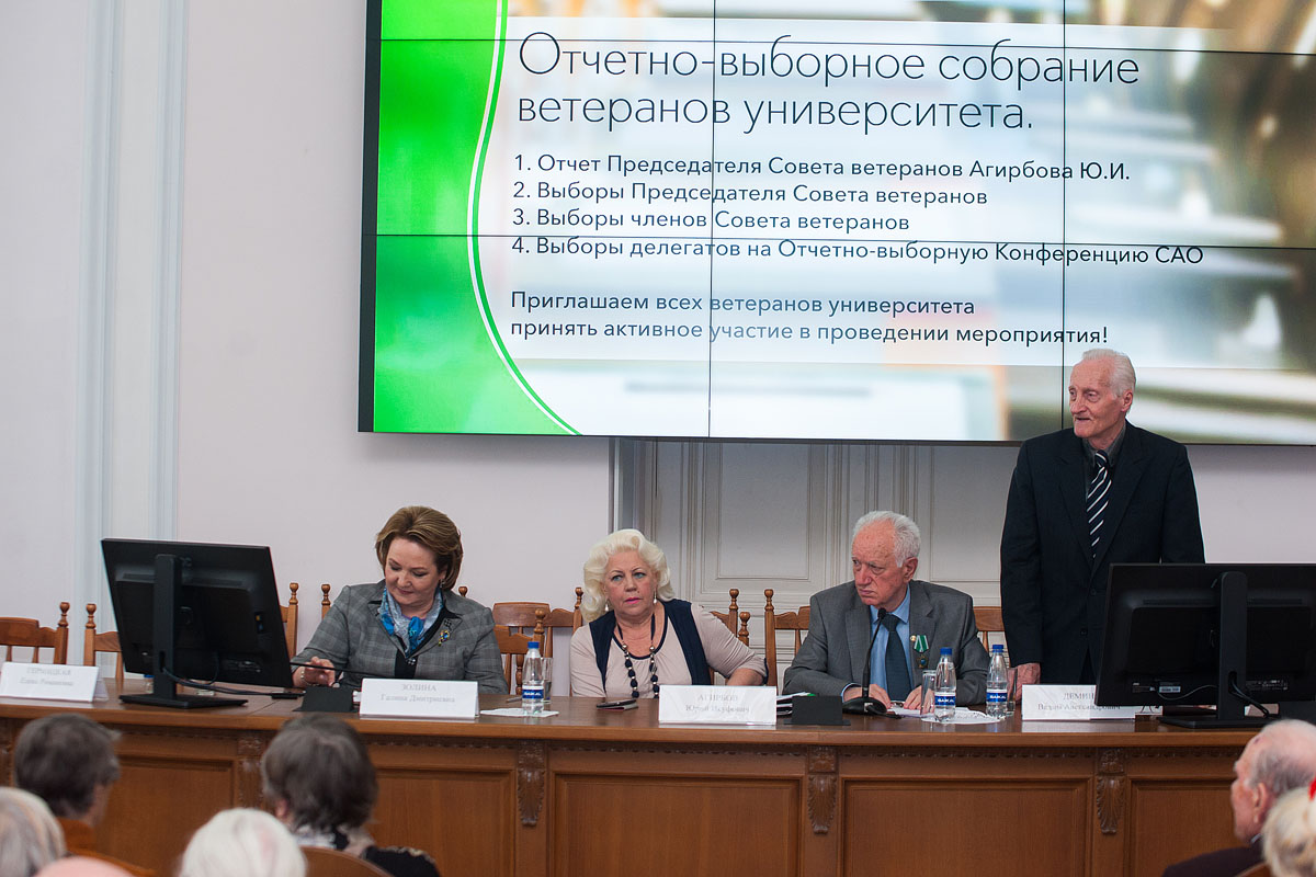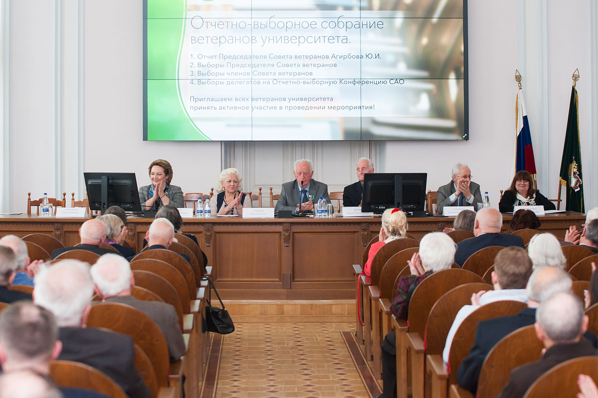 25 апреля в актовом зале 10 корпуса прошло отчётно-выборное собрание Совета ветеранов. На должность председателя был единогласно переизбран Юрий Агирбов