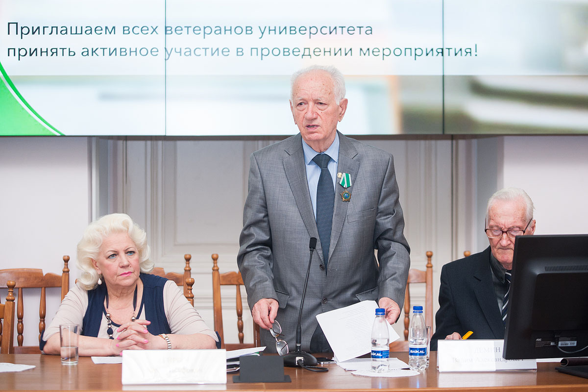 Докладчик подробно рассказал о мероприятиях, в подготовке которых участвовали ветераны, и поблагодарил руководство вуза за помощь и внимание к их нуждам.