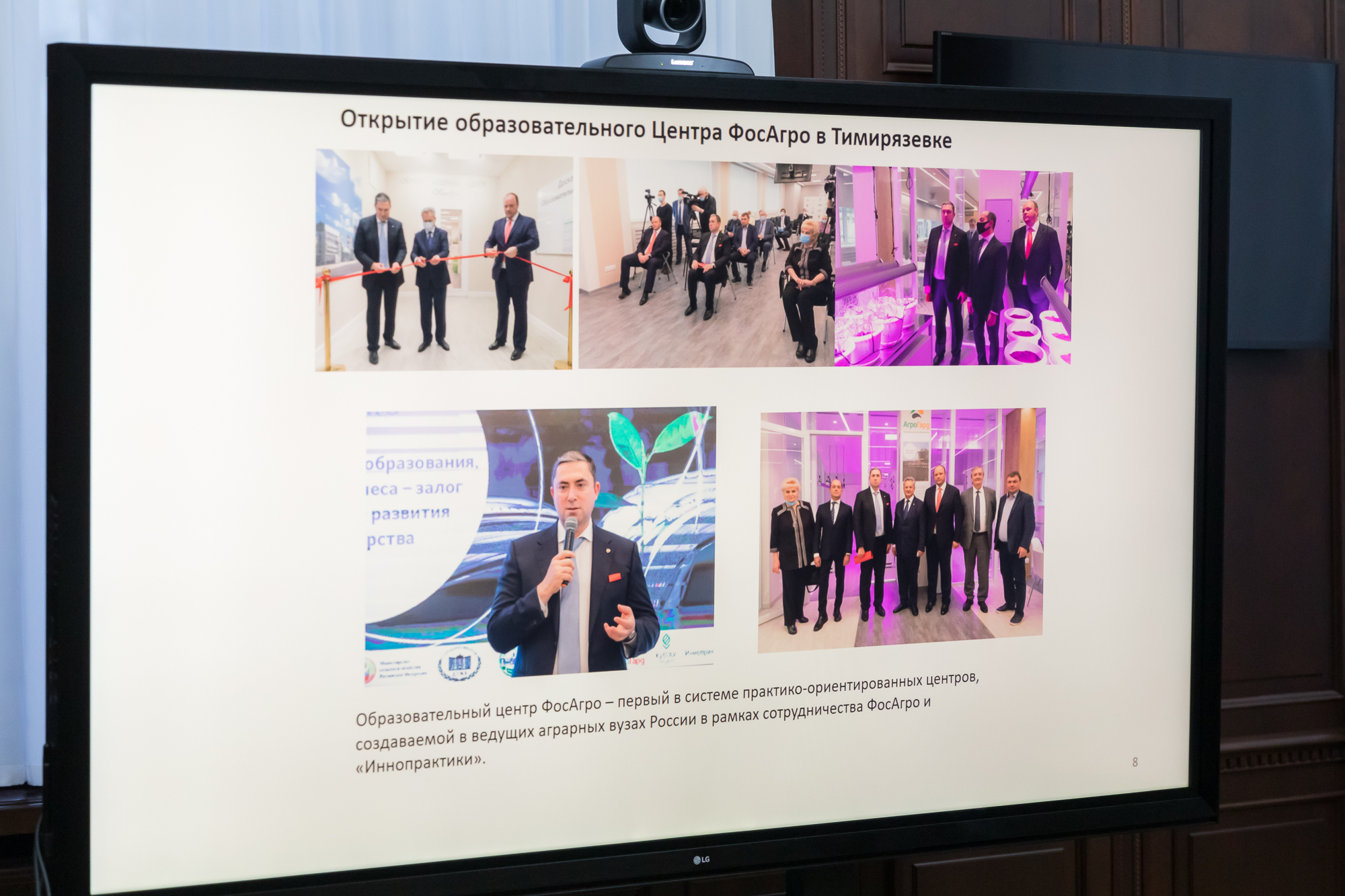 В этой связи В.И. Трухачев напомнил, что компания «ФосАгро», один из ведущих мировых производителей фосфорсодержащих удобрений, и РГАУ-МСХА дали старт работе научно-практического образовательного центра для подготовки высококвалифицированных кадров для АПК. Его основной целью являются подготовка кадров высшей квалификации с углубленным изучением дисциплин почвенно-агрохимического направления, формирование стратегического кадрового резерва компании «ФосАгро» из молодых талантливых специалистов.