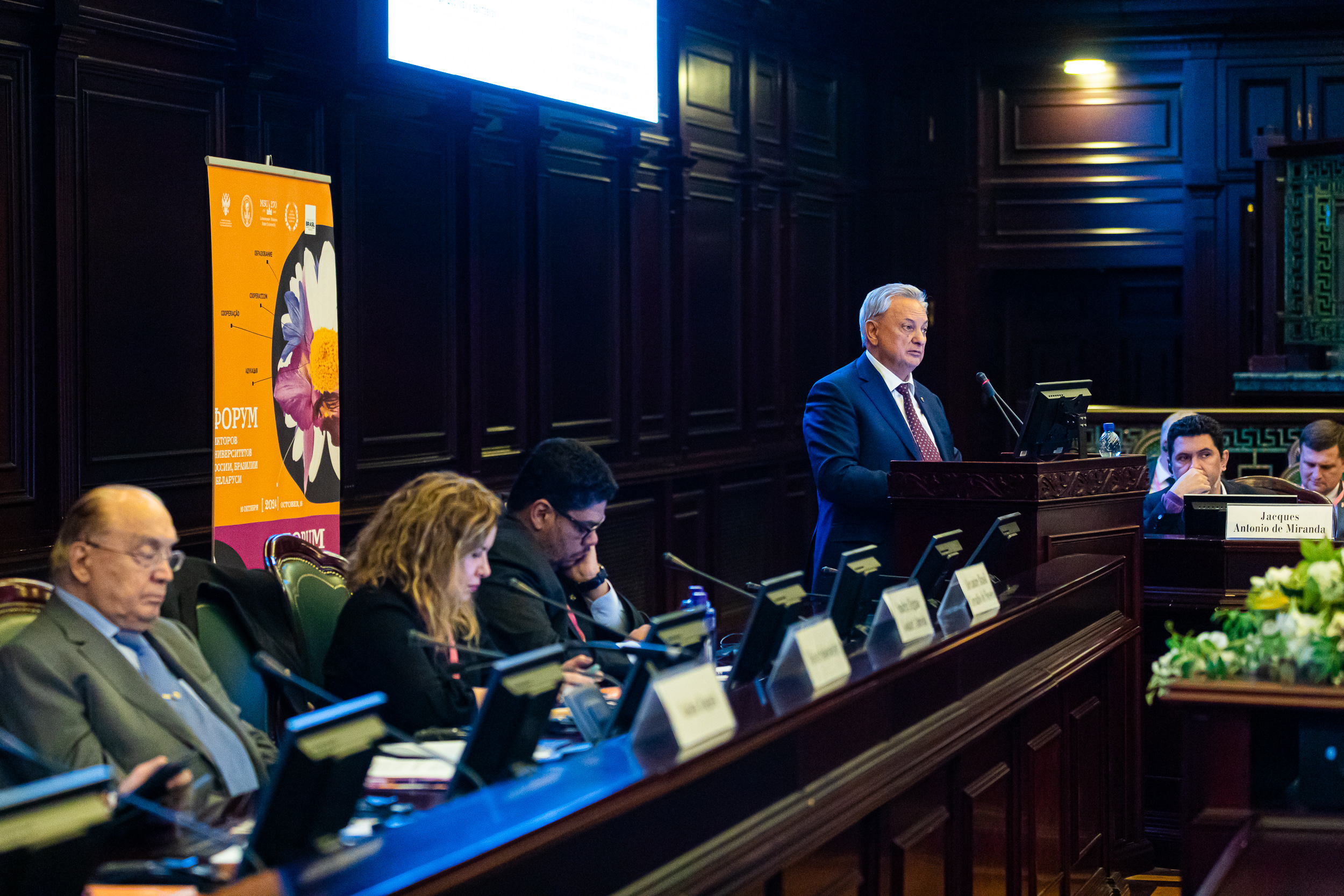 Ректор, Академик РАН, профессор Владимир Иванович Трухачев поделился опытом международного сотрудничества, в том числе результатами совместных проектов с Группой «ФосАгро». На полях форума глава университета поставил подпись под Меморандумом об академическом, научном и культурном взаимопонимании между Тимирязевской академией и Университетом Бразилиа.