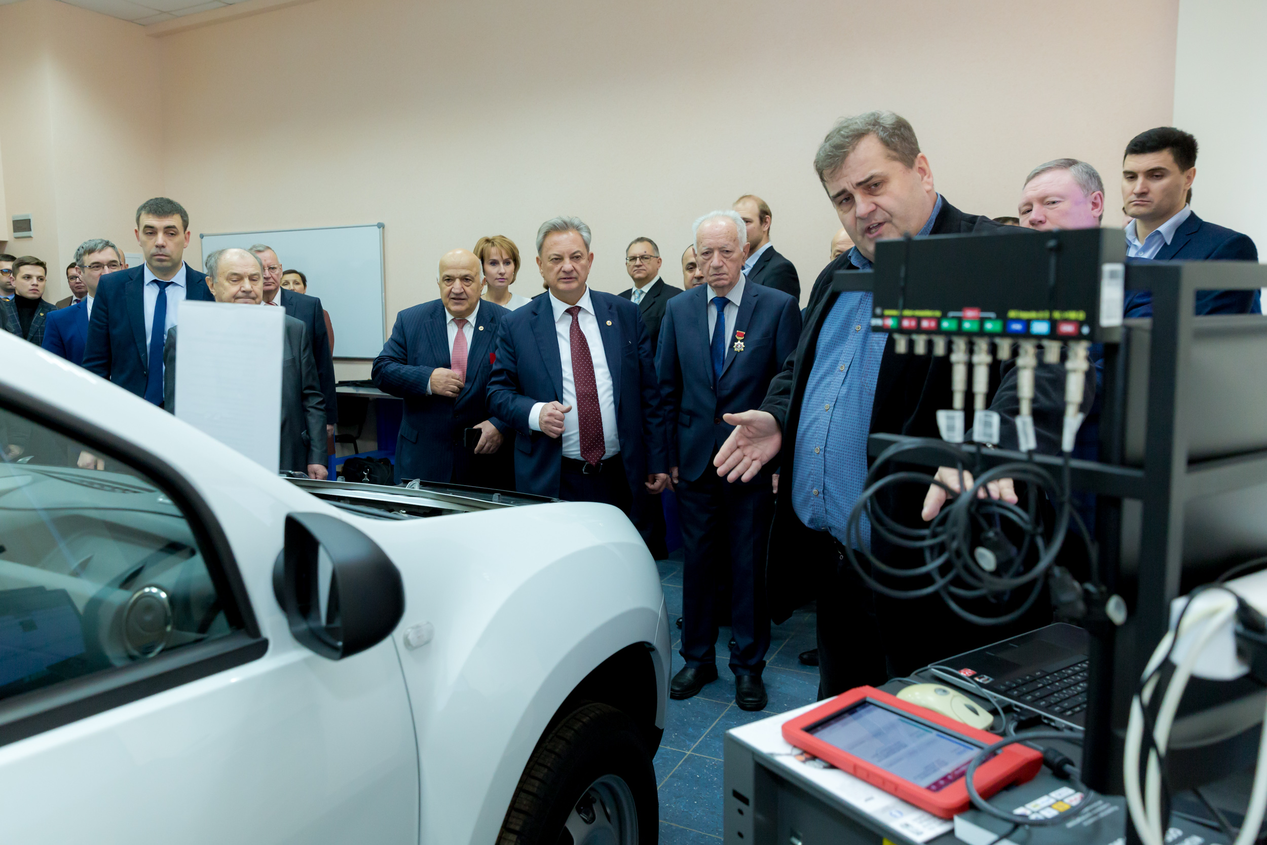 Владимиру Ивановичу Трухачеву показали порядка 15 лабораторий и учебных кабинетов, буквально заполненных новейшим цифровым диагностическим оборудованием для сельскохозяйственной техники. В них, как пояснил О.Н. Дидманидзе, студентам предстоит изучить устройство бензинового и дизельного двигателей, механических и автоматических трансмиссий, системы управления двигателями, а также различные конструкции ходовой части автомобилей.