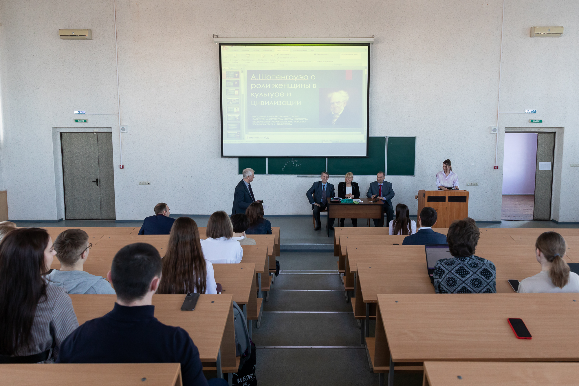 Так же общим решением участников конференции, на заключительное Пленарное заседание Университета, как лучший докладчик, была делегирована: Петрякова Анастасия Алексеевна, гр. Д-Э 103, тема доклада: Роль женщины в культуре и цивилизации: современная критика взглядов А. Шопенгауэра, научные руководители: Мамедов А.А., д.ф.н, доцент, Оришев А.Б., д.и.н, доцент.