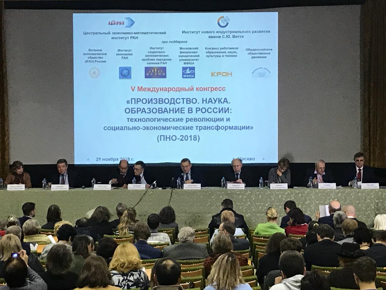 29.11.2018 г. В Москве был проведён V Международный конгресс. В Конгрессе принимали участие руководители и ведущие ученые научно-исследовательских институтов РАН, ведущие университетов и других научно-образовательных центров России, депутаты Государственной Думы ФС РФ, руководители предприятий реального сектора экономики, представители гражданского общества России, а так же зарубежные коллеги.