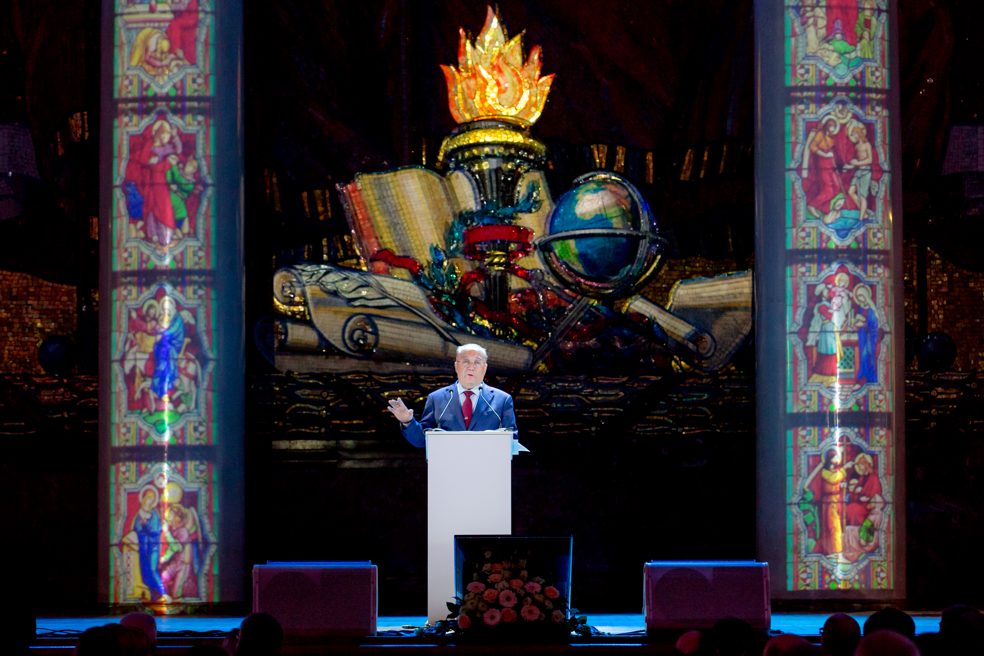 В заключение ректор МГУ напомнил всем собравшимся о миссии университетов в обществе, подчеркнув, что они раздвигают границы познания, приносят радость человеческого общения, активно изменяют мир и нас в этом мире. Финальным аккордом и лейтмотивом выступления В.А. Садовничего стала цитата из указа императрицы Елизаветы Петровны об основании Московского университета, являющаяся и общеуниверситетской заповедью: «Всякое добро происходит от просвещенного разума, а напротив того зло искореняется».