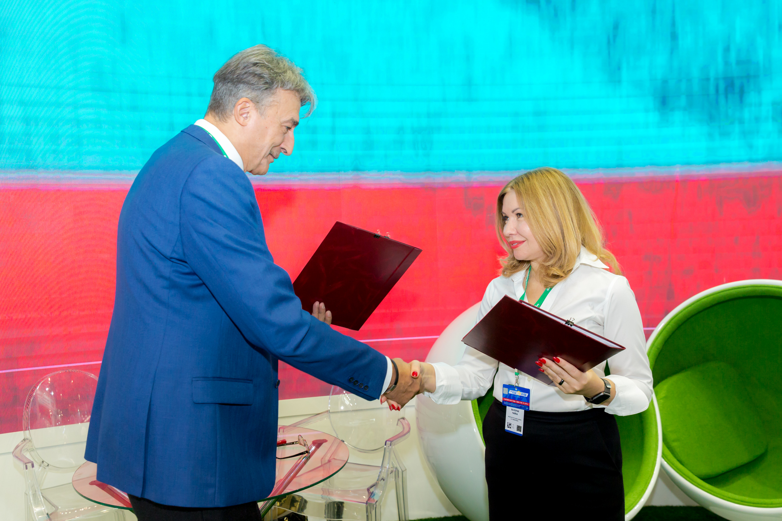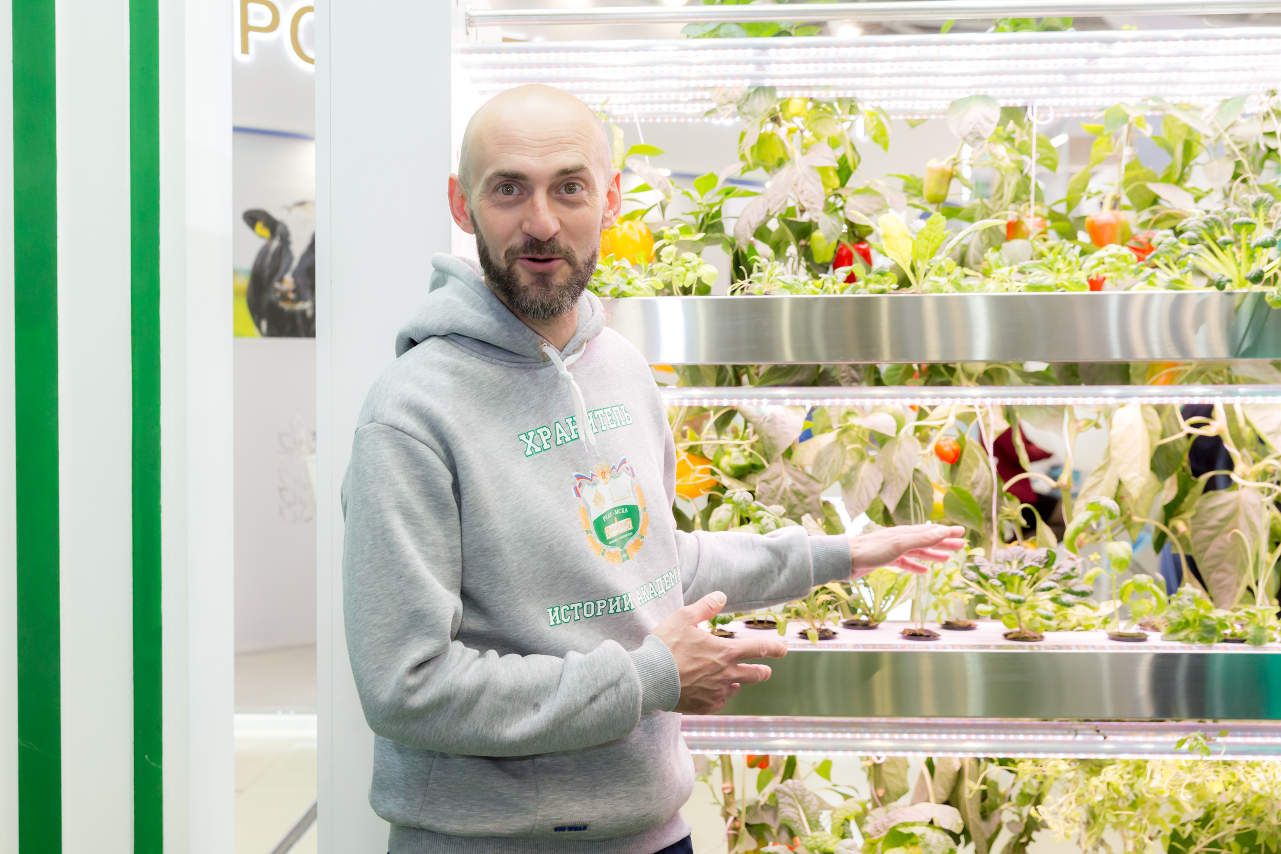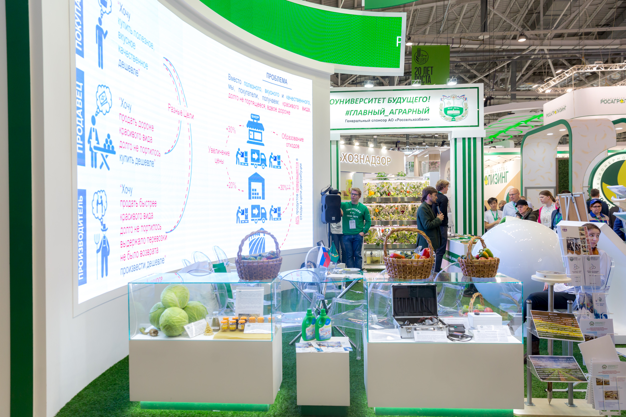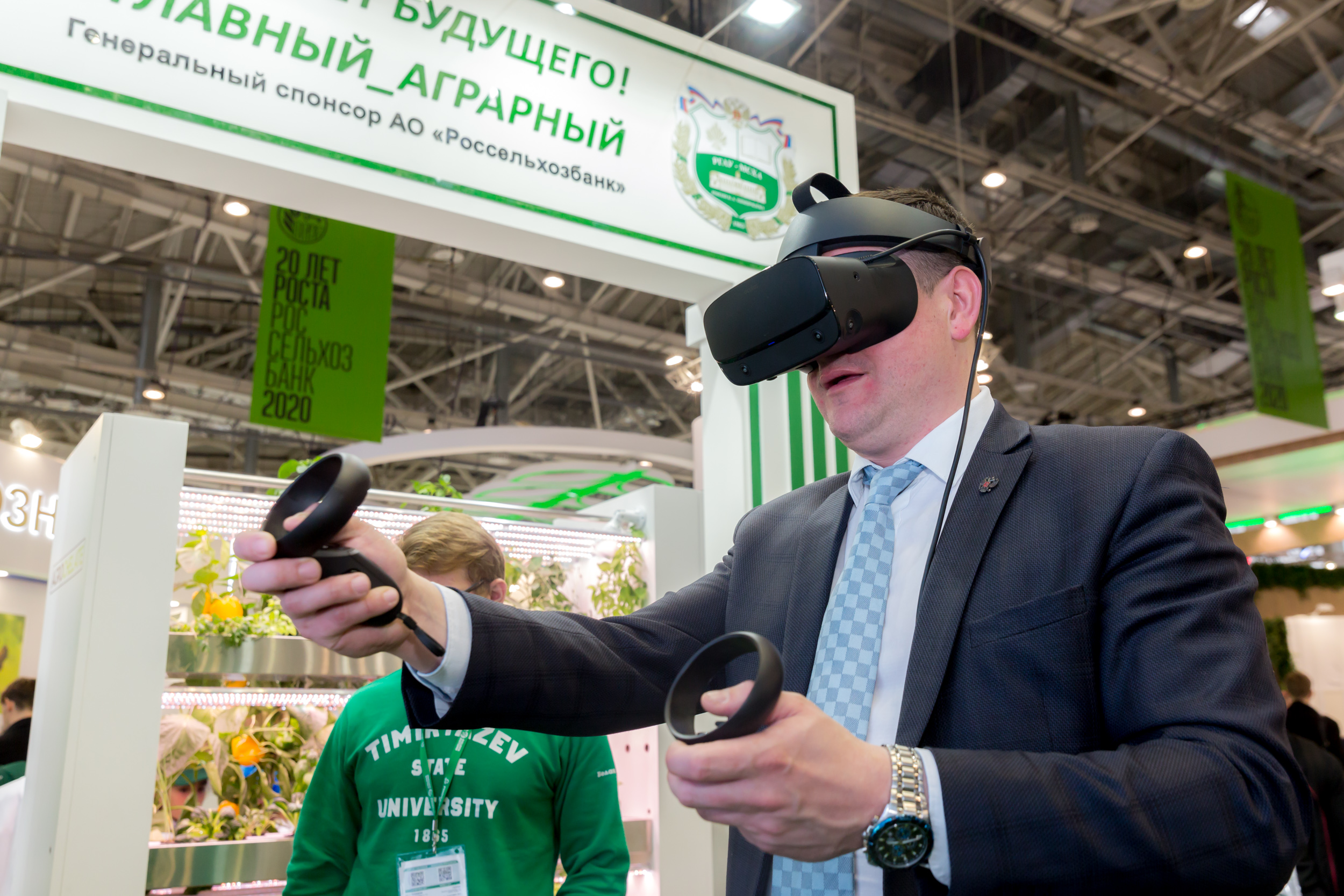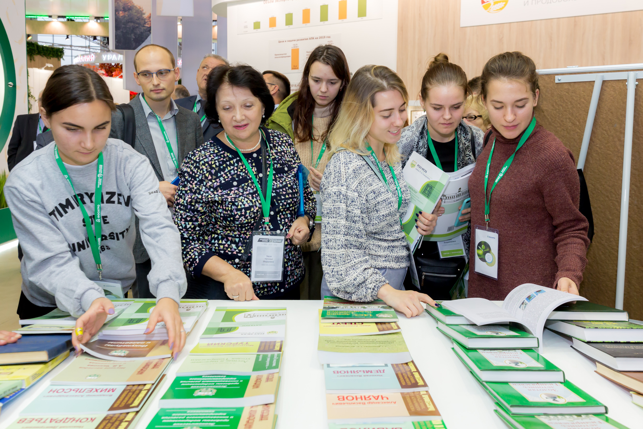 На университетском стенде Валерия Павловна беседовала с генеральным директором АО «МОСОБЛАГРОСНАБ» Сергеем Васильевичем Чупшевым. Затрагивались проблемы, представляющие взаимный интерес. Был, в частности, поднят вопрос о создании на базе Тимирязевки технического учебного класса Петербургского тракторного завода «Кировец».