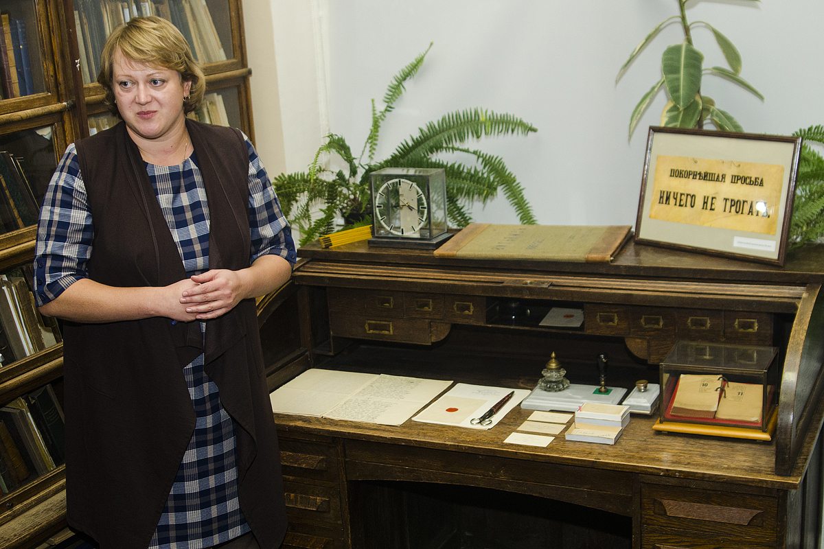 Вторая экспозиция, которая была представлена гостям – мемориальный кабинет. Здесь можно увидеть письменный стол ученого, кресло и сохранившиеся в отличном состоянии личные вещи - визитки, пенсне, календарь.