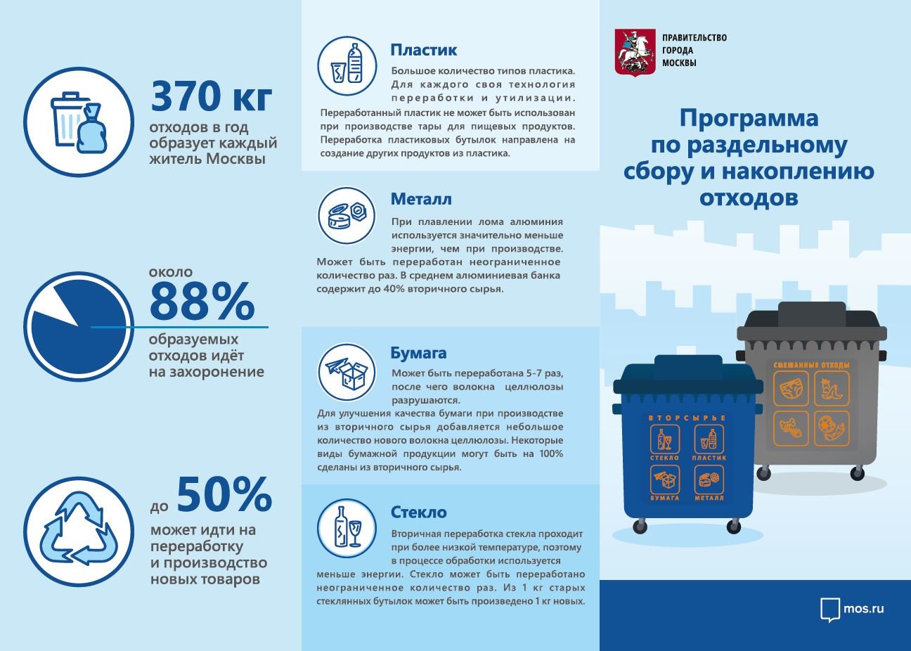 – По данным официального портала Правительства Москвы, содержимое синих контейнеров поступает в сортировочный комплекс, где его разделяют по видам. Далее вторсырьё отправляется на перерабатывающие заводы, расположенные в Подмосковье и ближайших регионах.