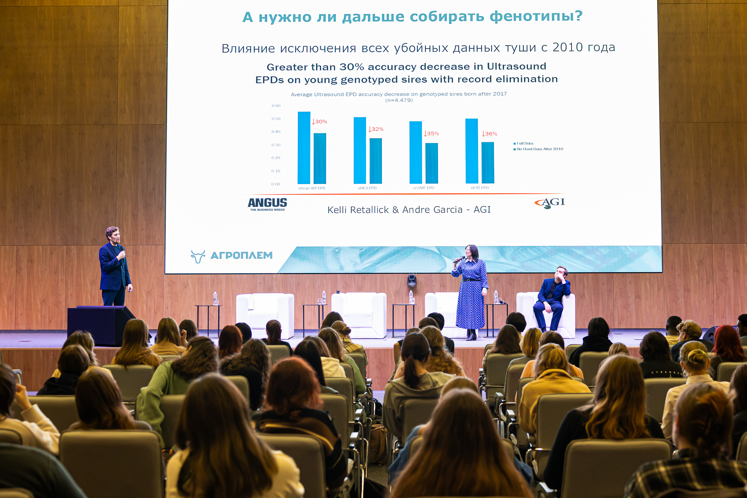 В команде М.И. Селионовой выступили выпускник Тимирязевской академии, а сегодня директор по научным разработкам лабораторно-исследовательского центра «Агроплем» – лидера научного сопровождения племенной работы и внедрению геномной селекции в России Илья Владимирович Рукин и молодой учёный вуза, победитель президентской научной стипендии Артём Юрьевич Загарин.