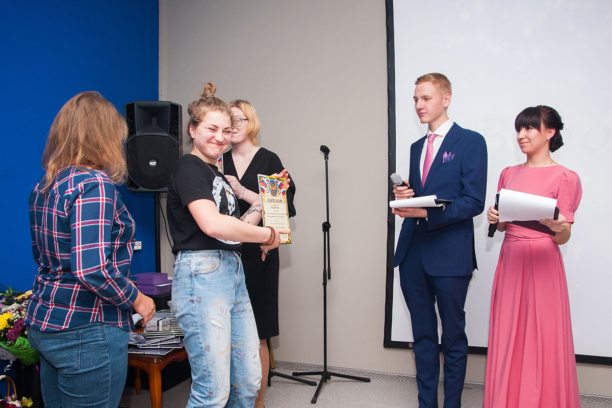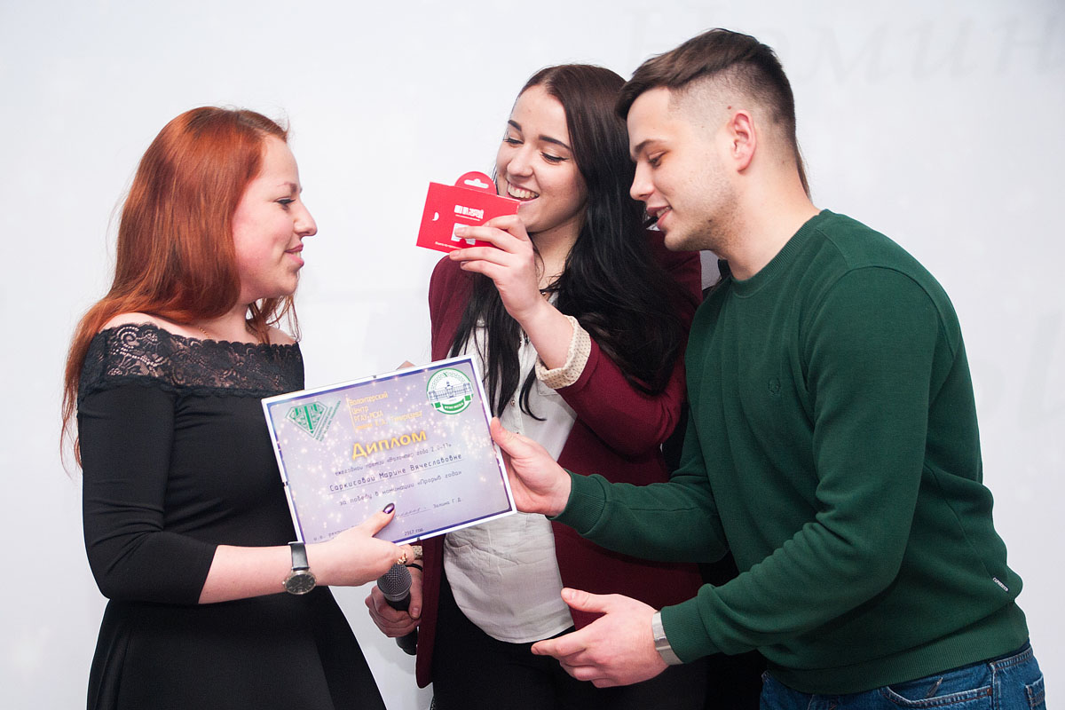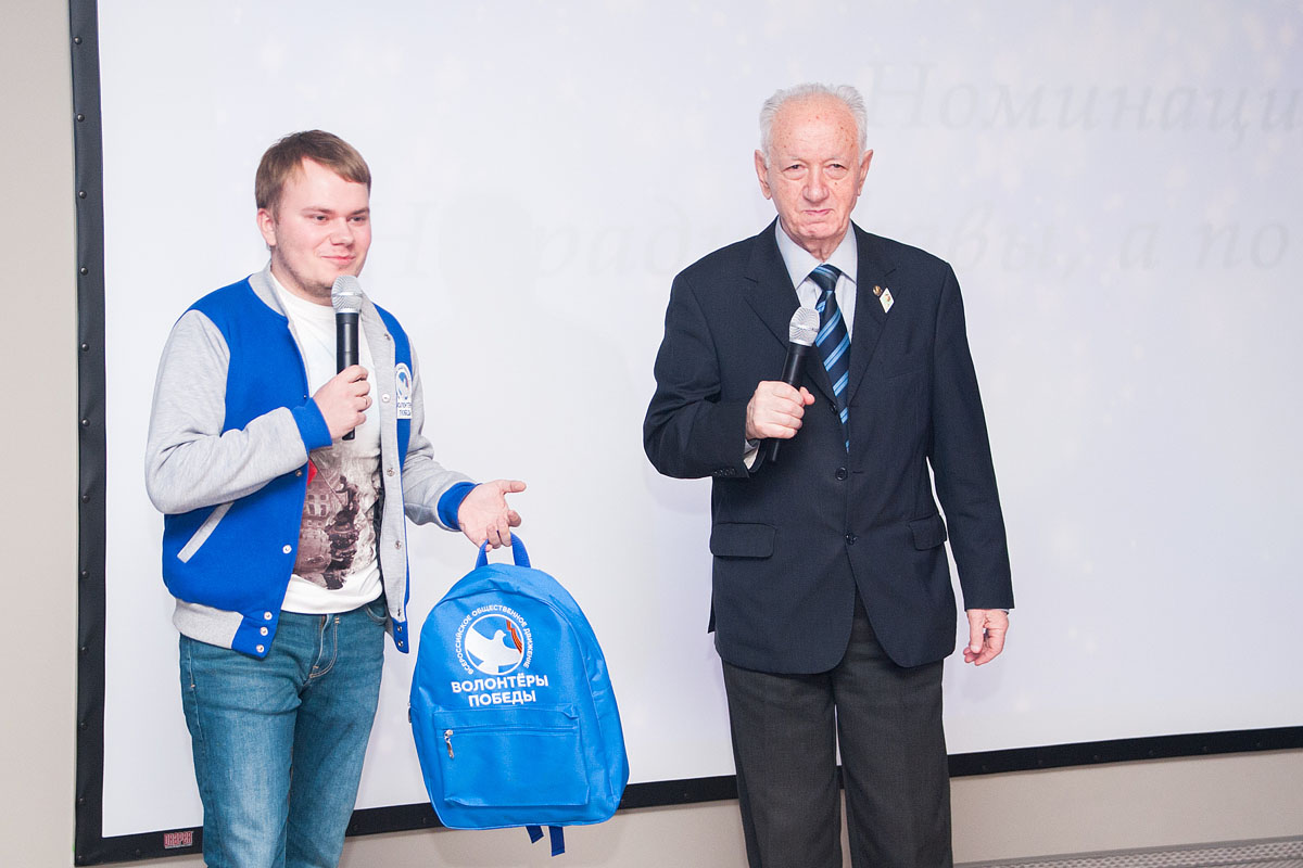 Руководитель Всероссийского движения «Волонтеры Победы» Владислав Марцаленко и Юрий Агибров вручили награду победителю в номинации «Не ради славы, а по зову сердца». Им стал студент факультета агрономии и биотехнологии Артем Тен. В качестве подарка он получил приглашение на празднование юбилея победы в Сталинградской битве, на который соберутся 200 лучших волонтеров страны.Тепло поздравили студентов Алексей Балабаев и Светлана Саламайкина, куратор и руководитель Волонтерского центра РГАУ-МСХА.