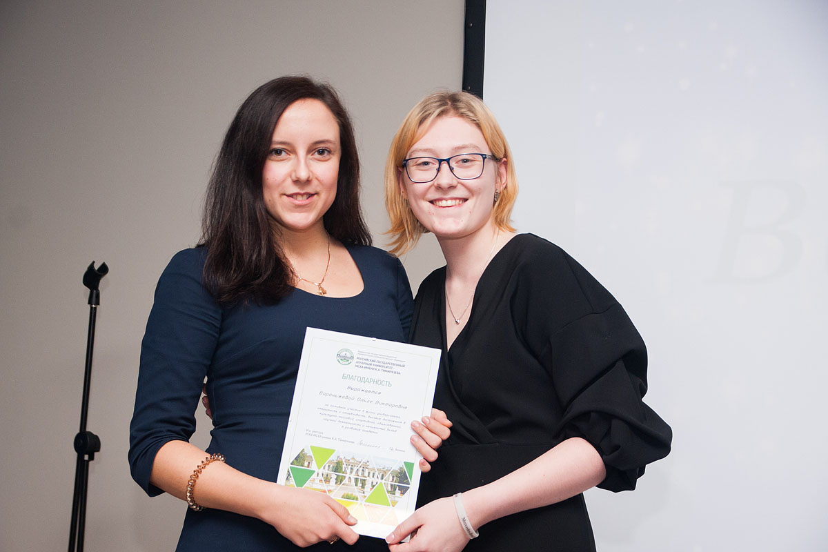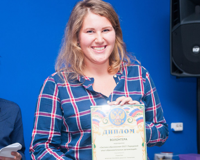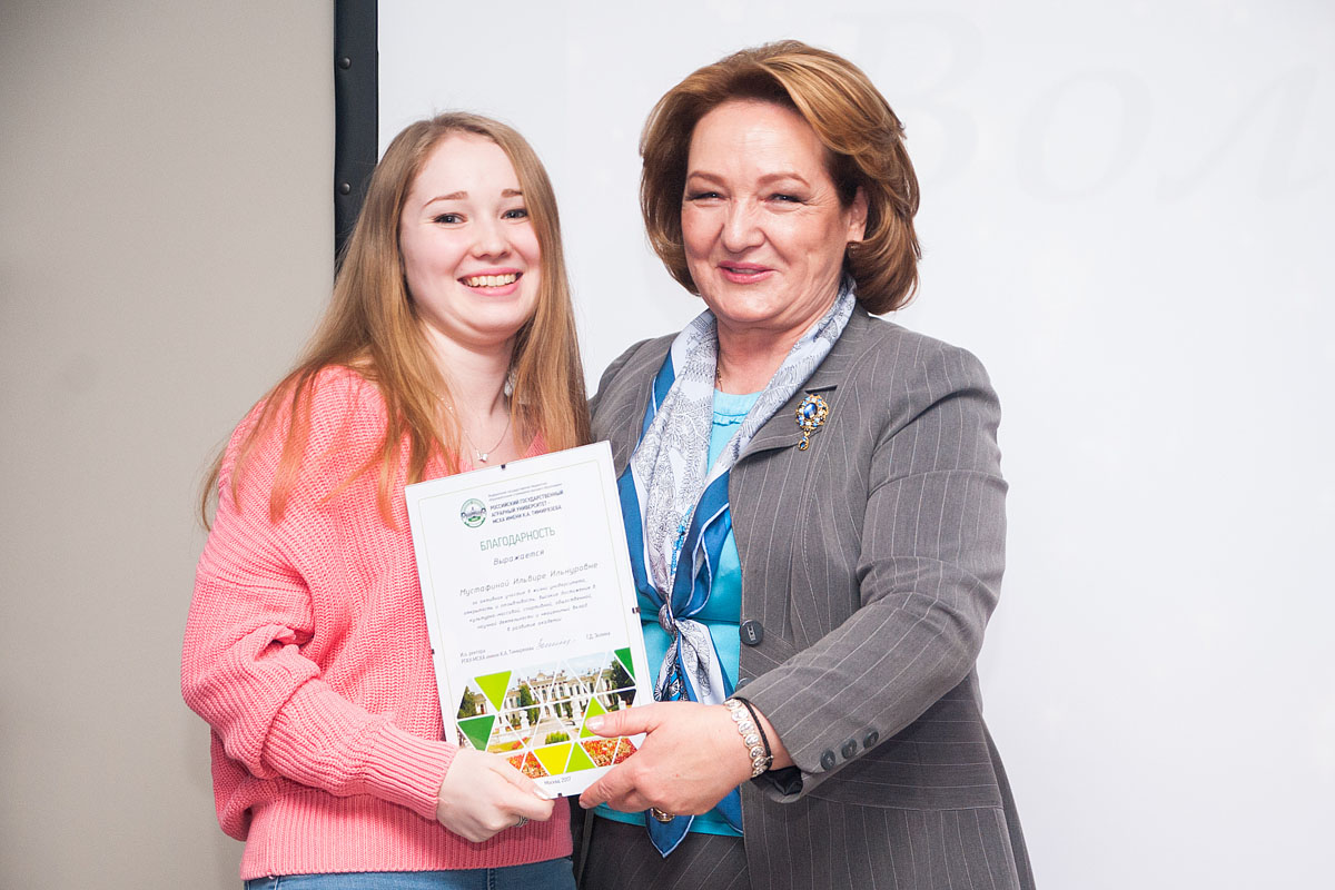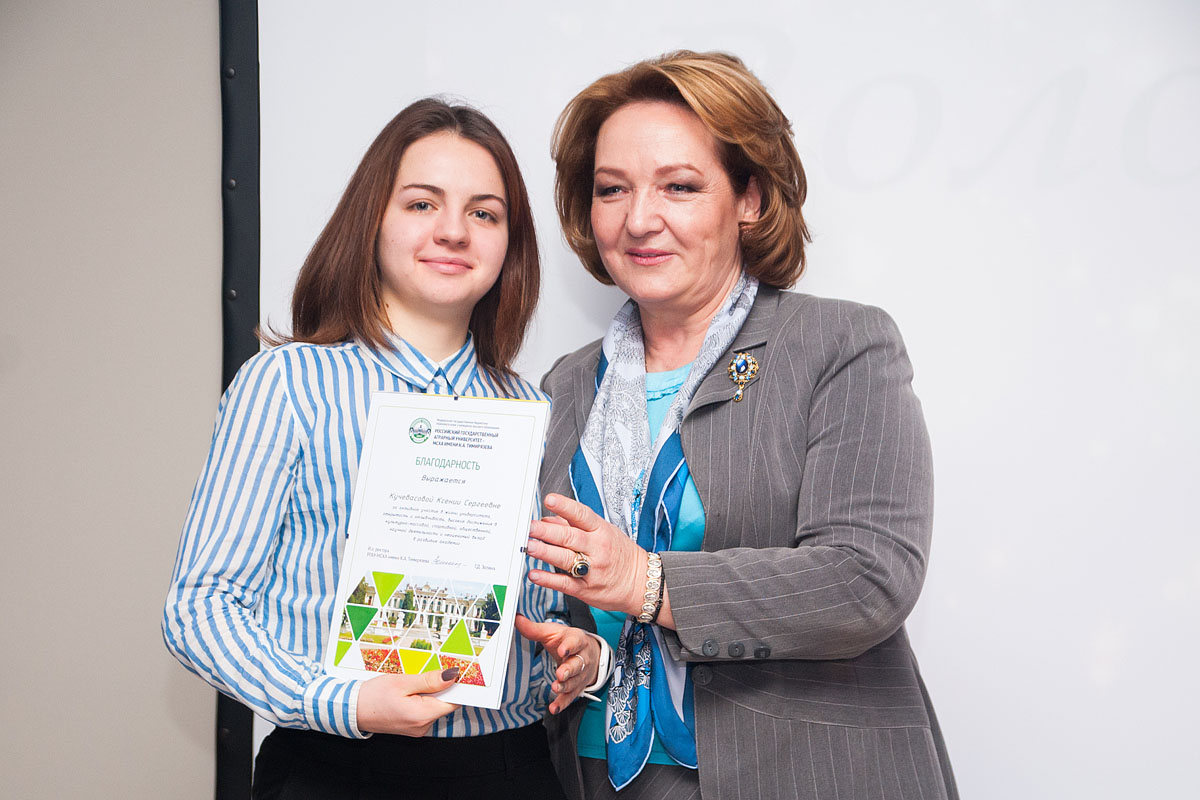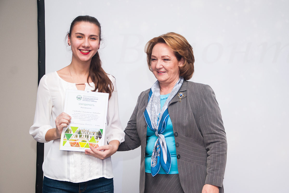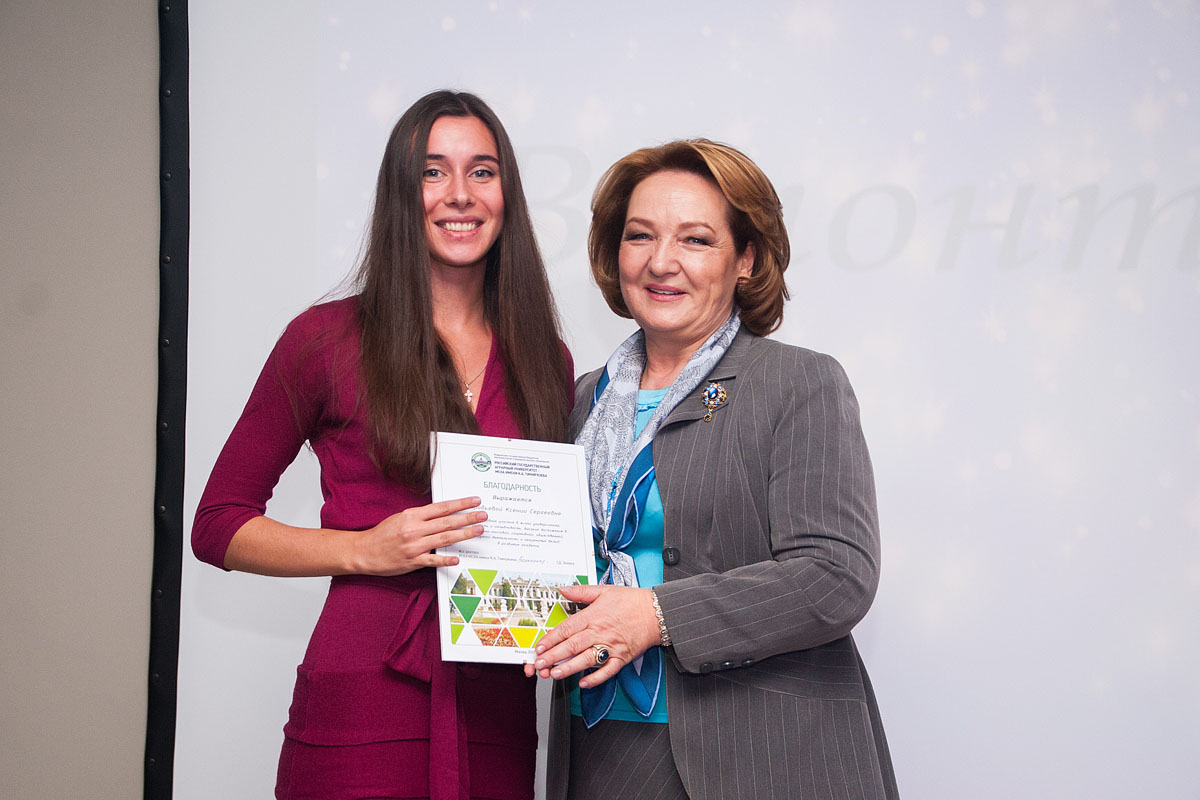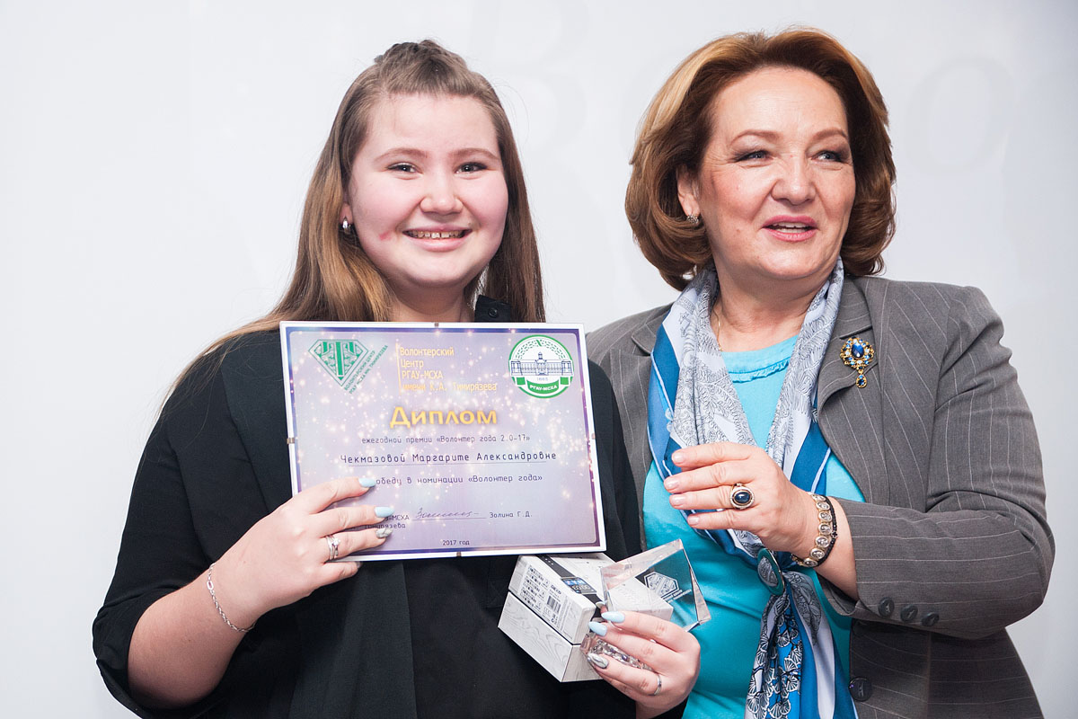 Галина Золина напомнила студентам, что добровольческое движение всегда было в традициях Тимирязевки и привела примеры жертвенности ученых, сотрудников и студентов в военные годы.Все добровольцы главного аграрного получили почетные грамоты. Кроме того, и.о. ректора вручила главную награду вечера лучшему волонтеру Тимирязевской академии. Победителем в этой номинации стала студентка факультета экономики и финансов Маргарита Чекмазова.В своей проникновенной речи председатель Совета ветеранов Юрий Агирбов отметил постоянную волонтерскую помощь Совету ветеранов. По мнению заслуженного тимирязевца, волонтеры свято хранят традиции, не забывая мудрое изречение, что память должна иметь прибежище.