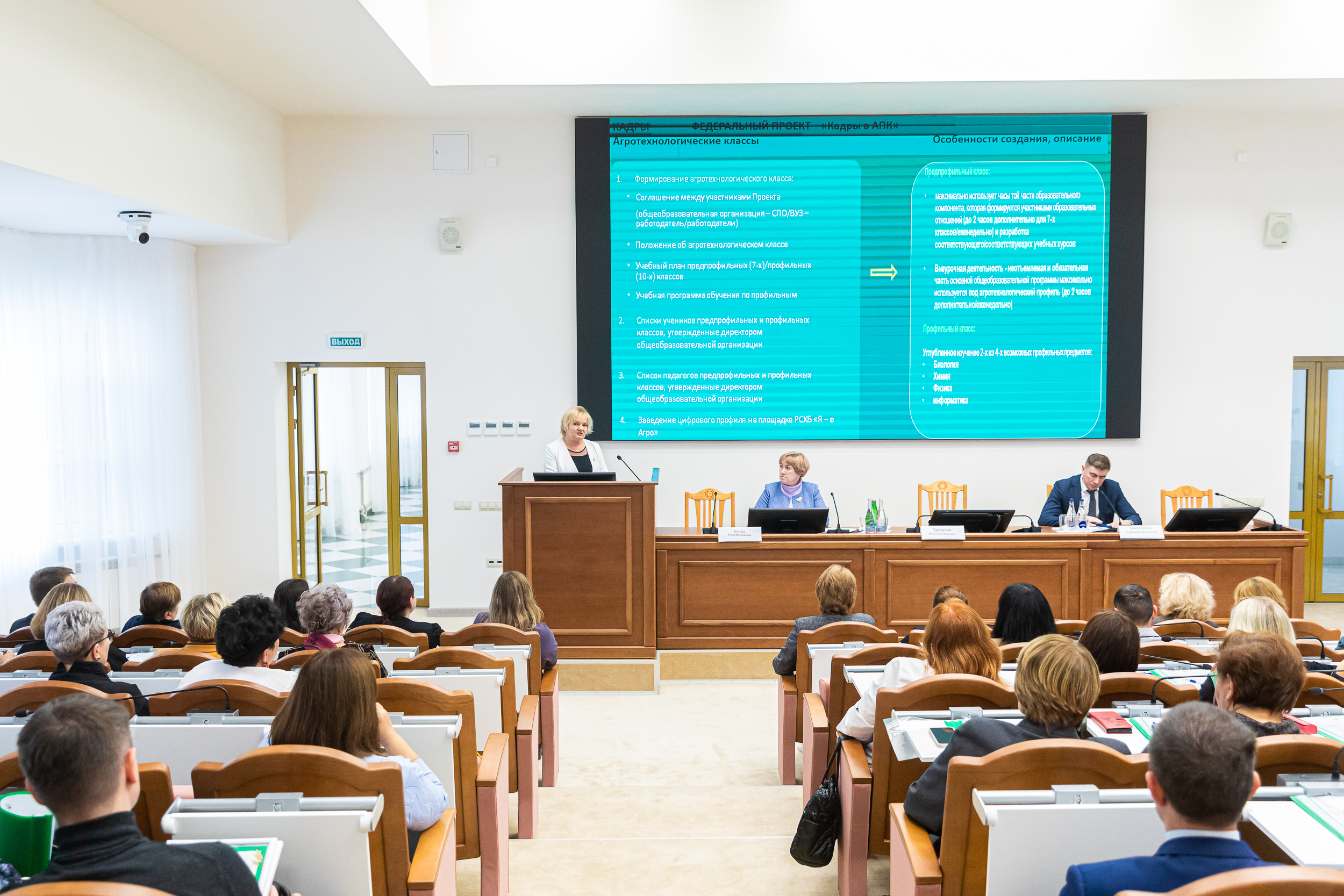 Проректор по учебной работе Елена Васильевна Хохлова обозначила основные направления взаимодействия университета, школ, специалистов крупных агрохолдингов и производств в области функционирования и развития агротехнологических классов. Она также отметила, что Тимирязевская академия всегда придерживалась высоких стандартов образования и является примером успеха в подготовке квалифицированных специалистов.