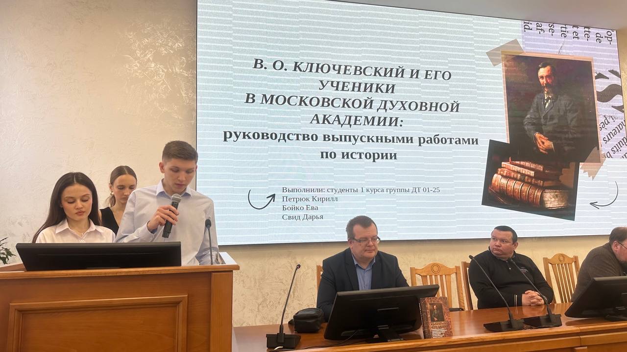 Профессор Павел Викторович Федоров рассказал о ходе работы над хрестоматией «Ключевский и его школа», которая включает в себя не только знаковые тексты историка, но и его ценные отзывы на выпускные студенческие работы. В создании этого пособия активное участие приняли не только преподаватели кафедры истории, но и члены студенческого научного общества университета, оказавшие значительную помощь в качестве волонтеров. Этот проект является ярким примером эффективного приобщения молодежи к научному и патриотическому наследию.