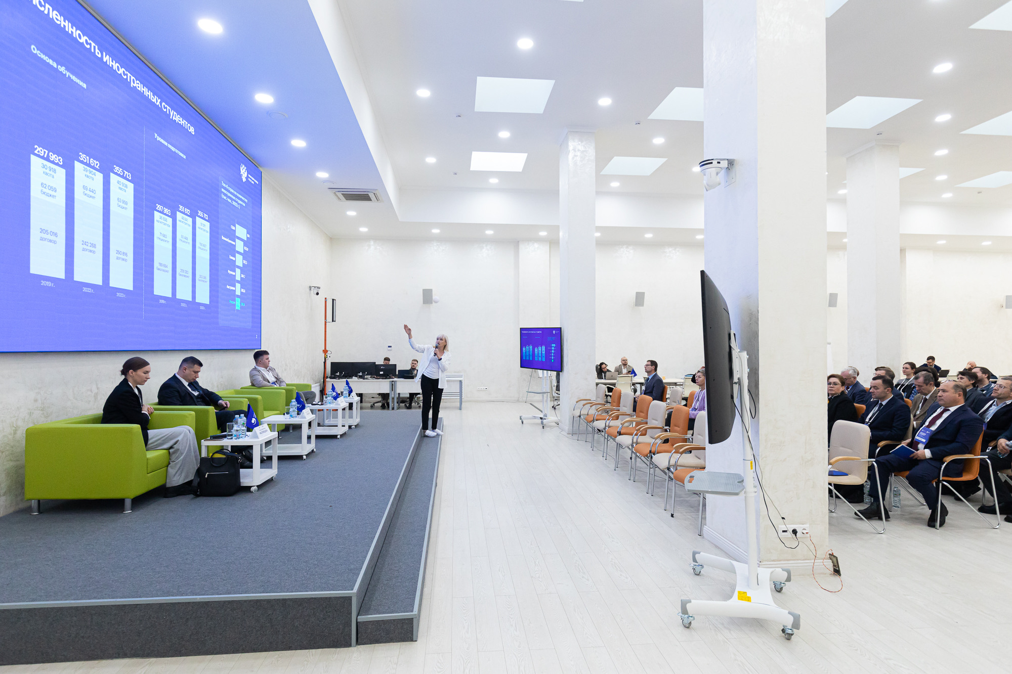 Сессия началась с пленарного заседания, на котором обсуждалось привлечение иностранных студентов на обучение, функционирование филиальной сети российских университетов за рубежом и те вызовы, с какими они сталкиваются.