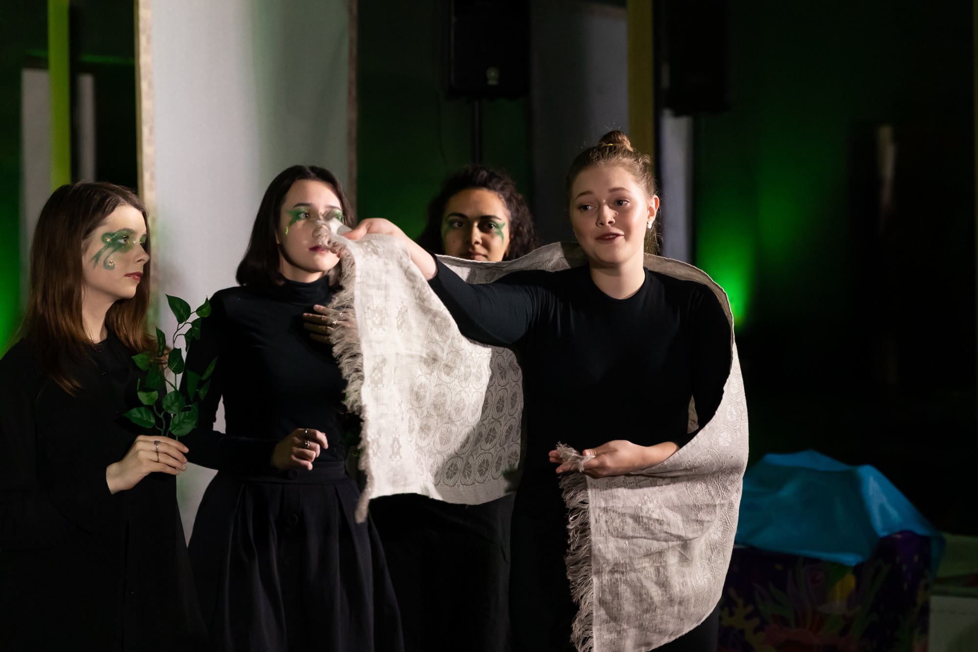 Артисты студии театрального искусства Тимирязевской академии представили зрителям свой первый большой спектакль «Страсти по Федоту». Действие постановки разворачивалось в необычном для зрителя виде – в формате иммерсивного спектакля. Премьера, приуроченная к 75-летию Народного театра Тимирязевки, состоялась на камерной сцене обновлённого учебного корпуса №29.
