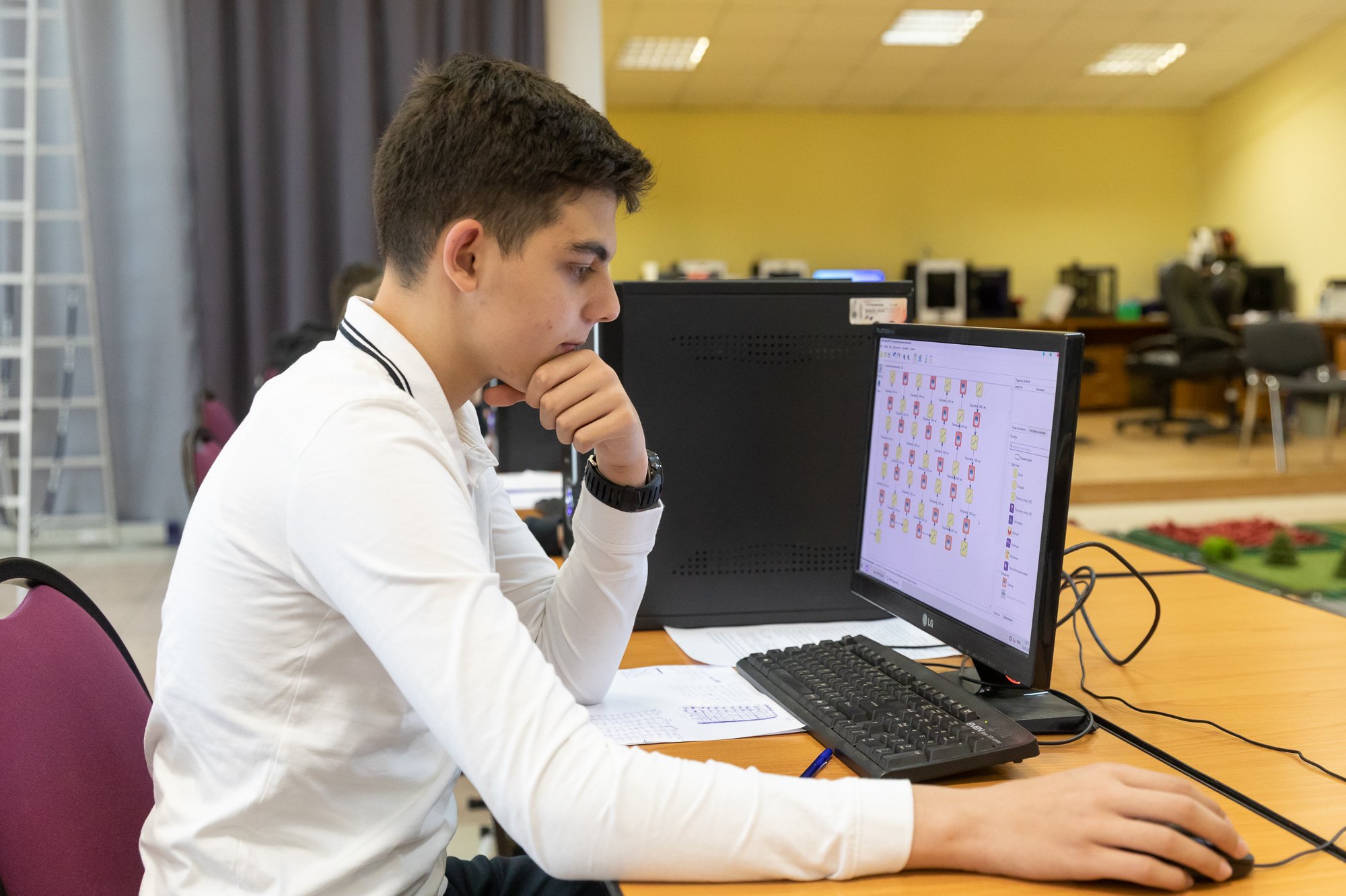 Участникам направления «АгроРоботы» предстояло, управляя агророботами на специальном полигоне, продемонстрировать свои компетенции в области удалённого автоматизированного управления микроклиматом сооружений защищенного грунта.