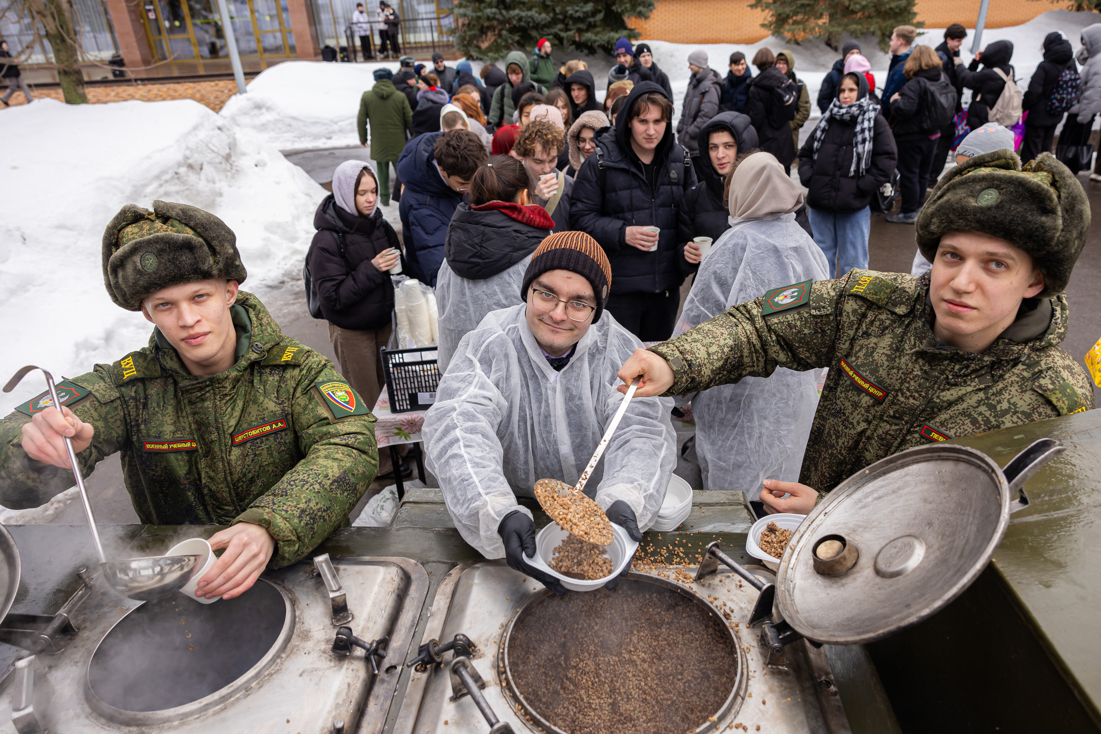 04 Март / 2026«Солдатская каша» в Тимирязевке проходит не только на больших мероприятиях, но и в течение учебного года. Инициативу студенчества проводить чаще такие мероприятия поддержал ректор Академии, Академик РАН, профессор Владимир Иванович Трухачев.