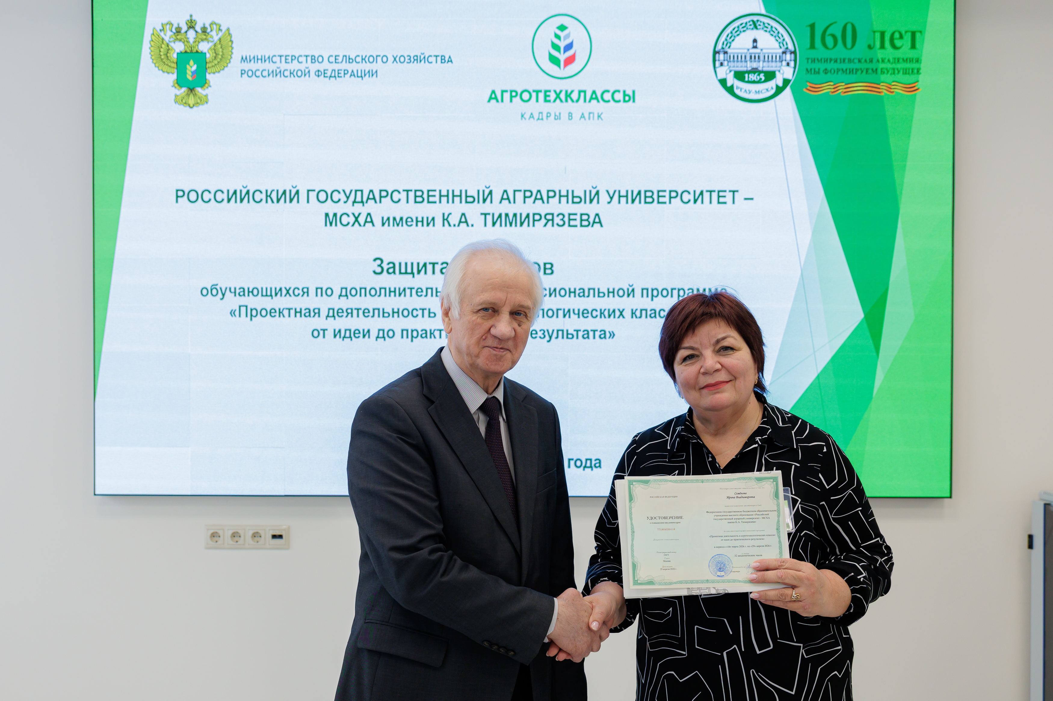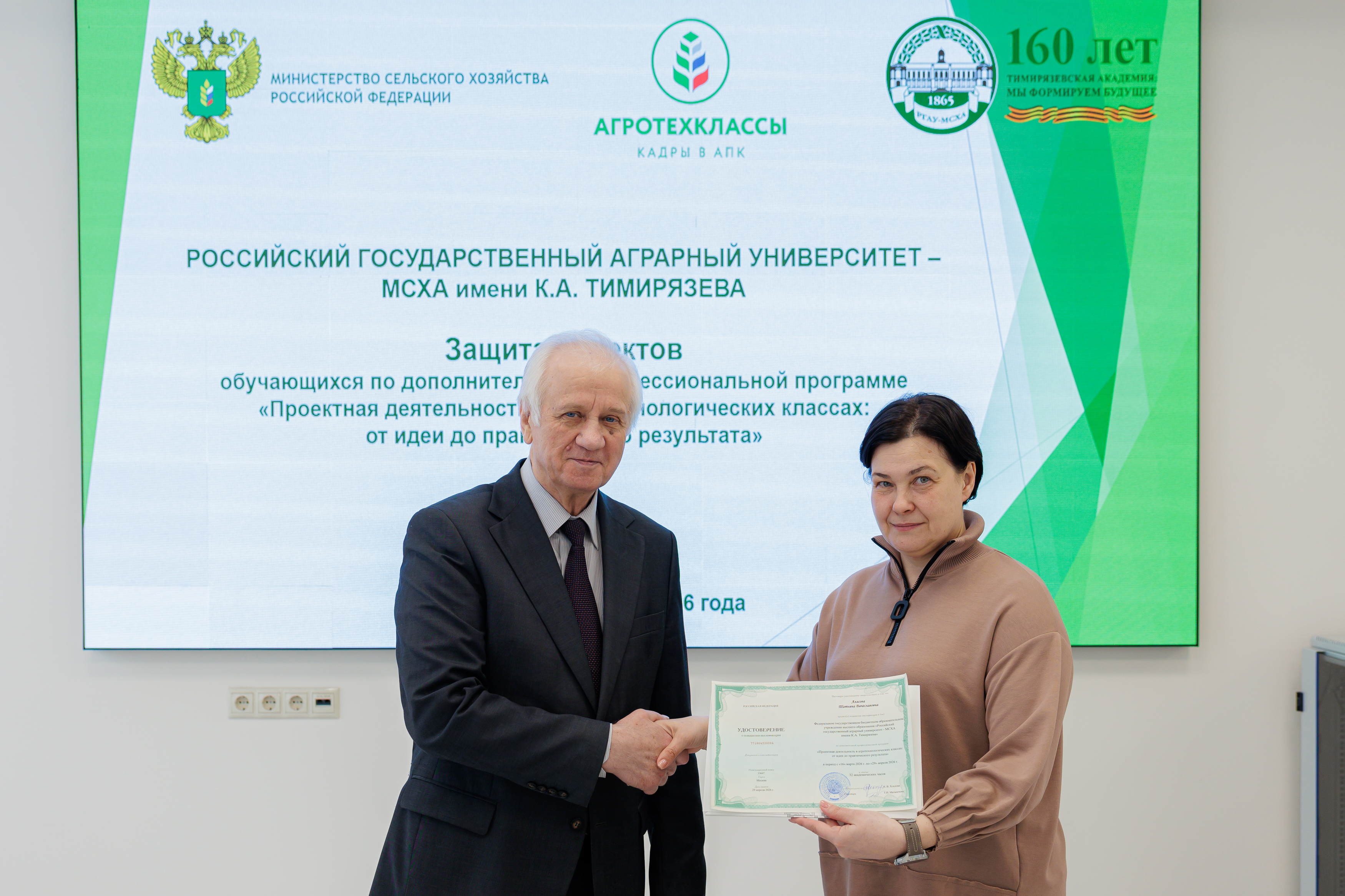 В Российском государственном аграрном университете – МСХА имени К.А. Тимирязева состоялось успешное завершение программы повышения квалификации «Проектная деятельность в агротехнологических классах: от идеи до практического результата». Эта программа, объединившая учителей химии, биологии, математики и физики, работающих в агротехнологических классах по всей стране, стала вторым масштабным проектом, который Тимирязевка реализует как федеральный оператор курсов повышения квалификации.