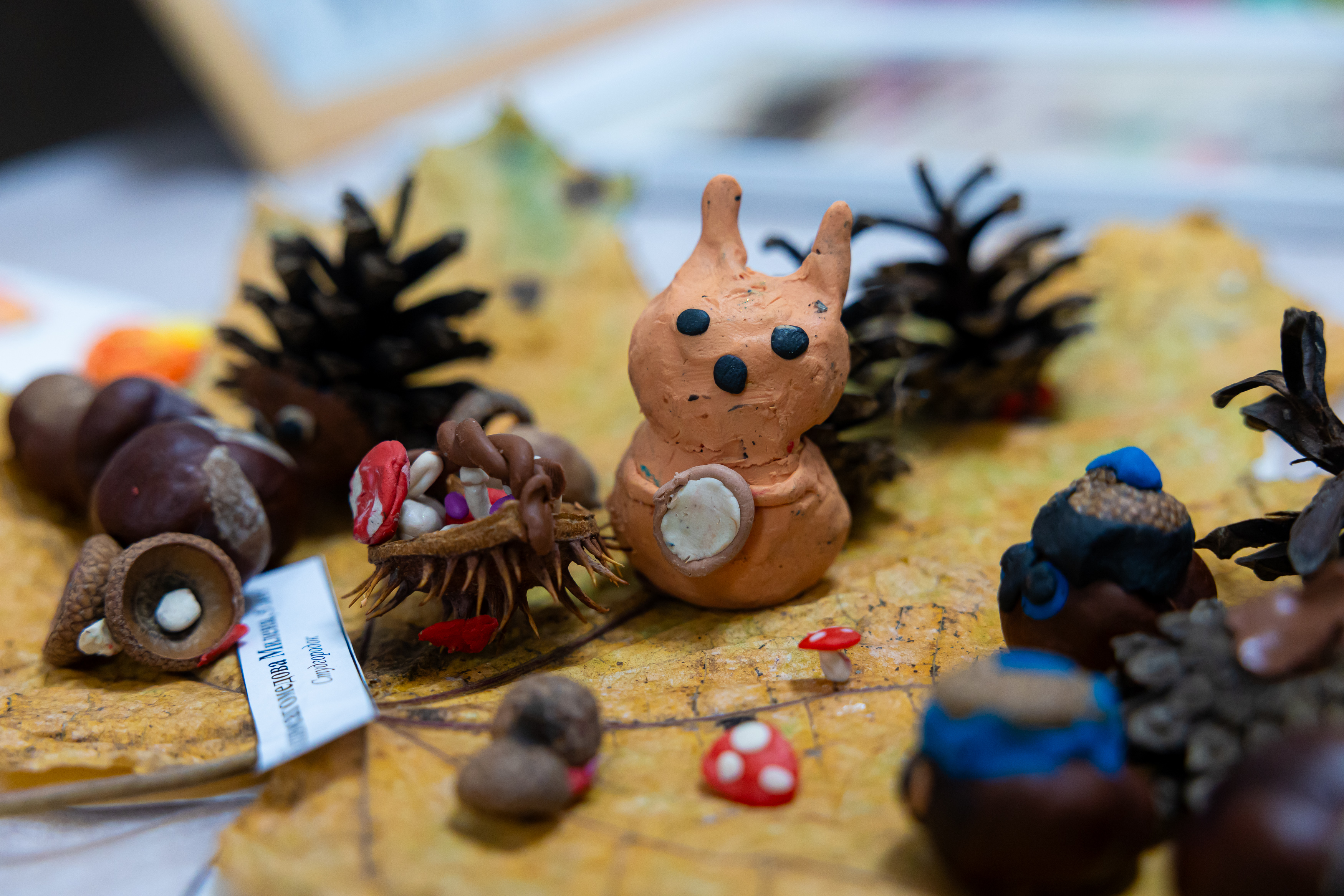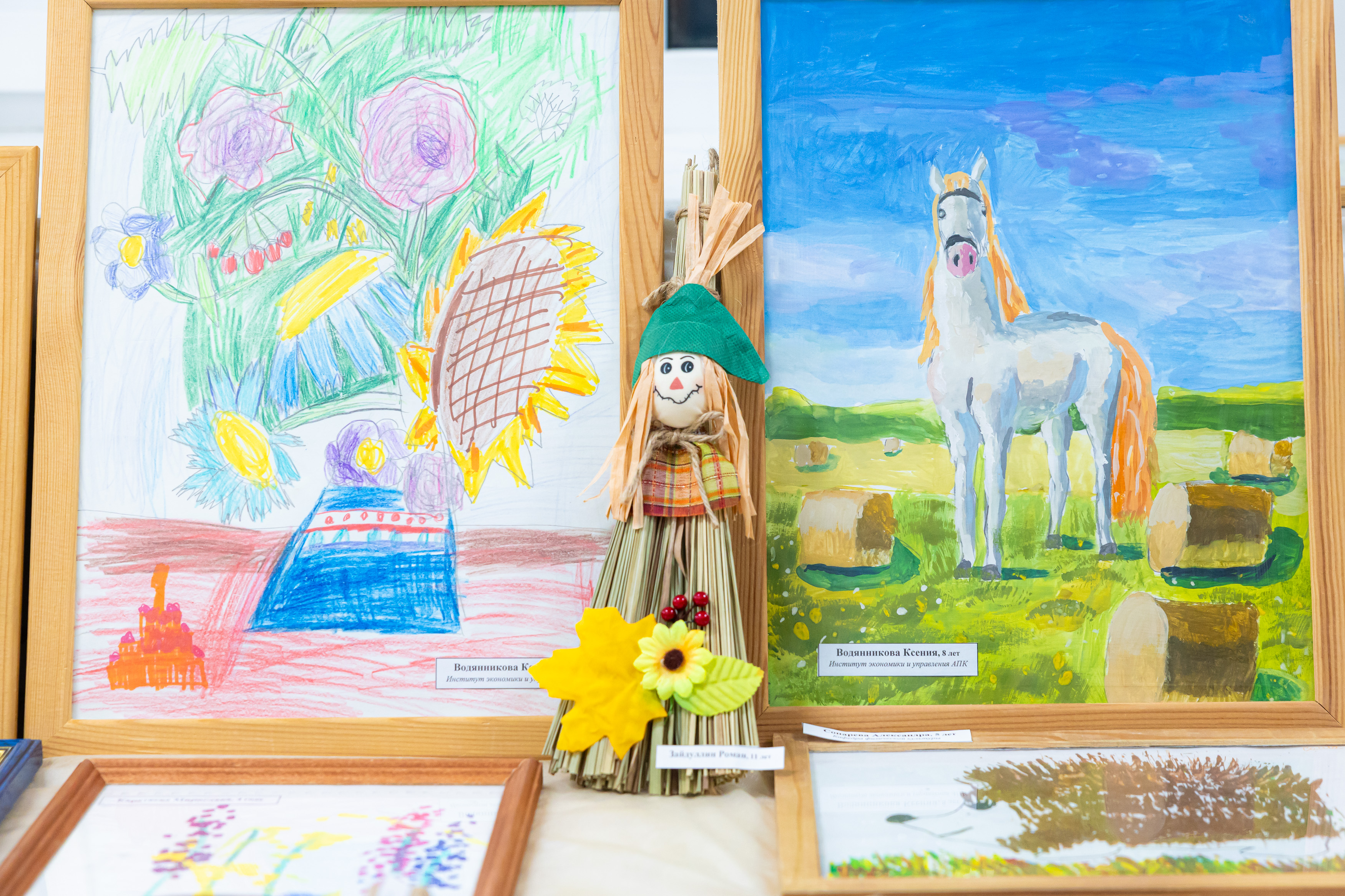 02 Декабрь / 2025На выставке представлены десятки творческих работ: живописные пейзажи с корпусами университета, детальные зарисовки сельскохозяйственной техники и животных, а также аппликации и композиции из природных материалов, выполненные в самых разных техниках — от акварели и гуаши до коллажа и пластилиновых миниатюр.