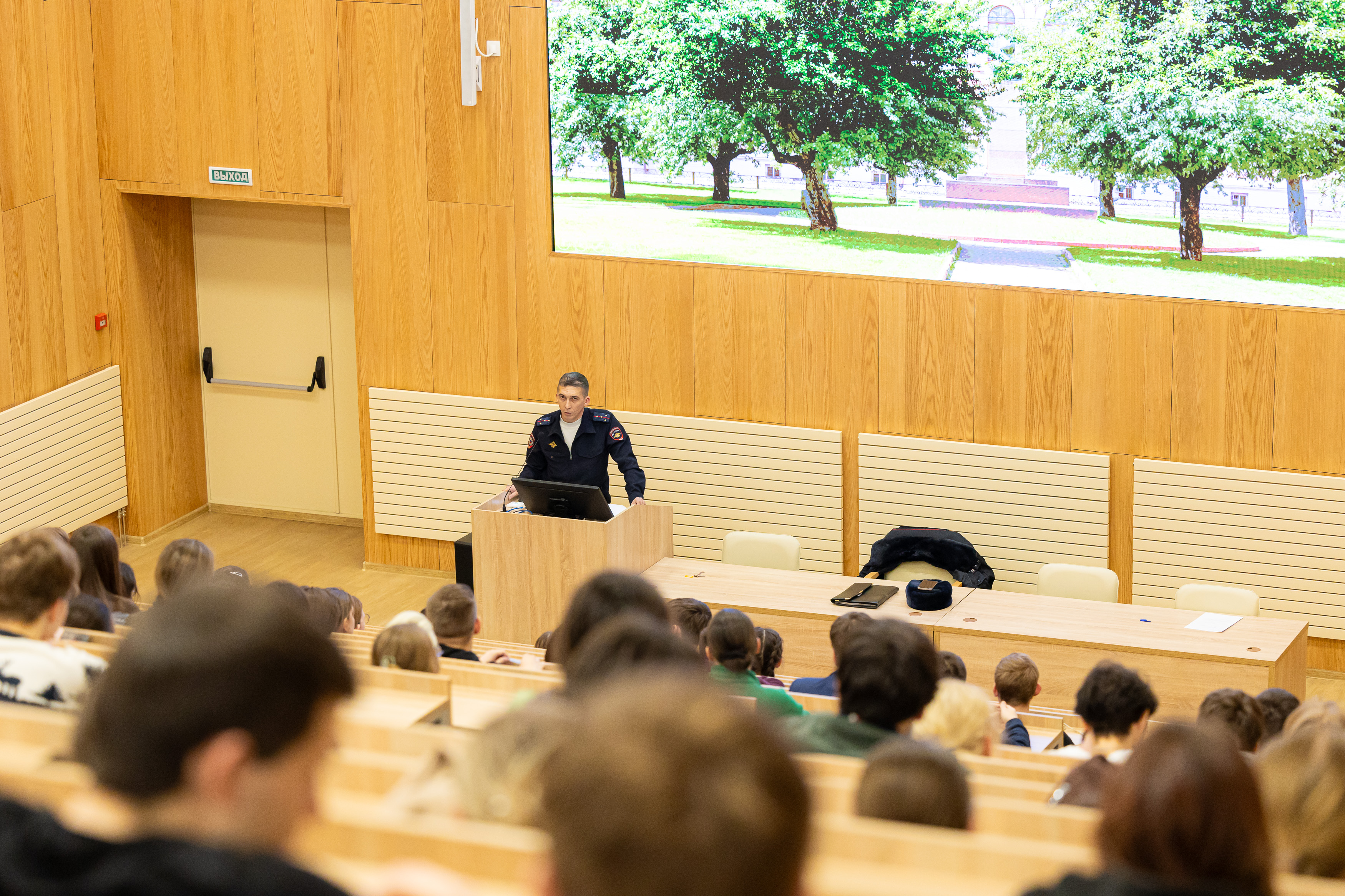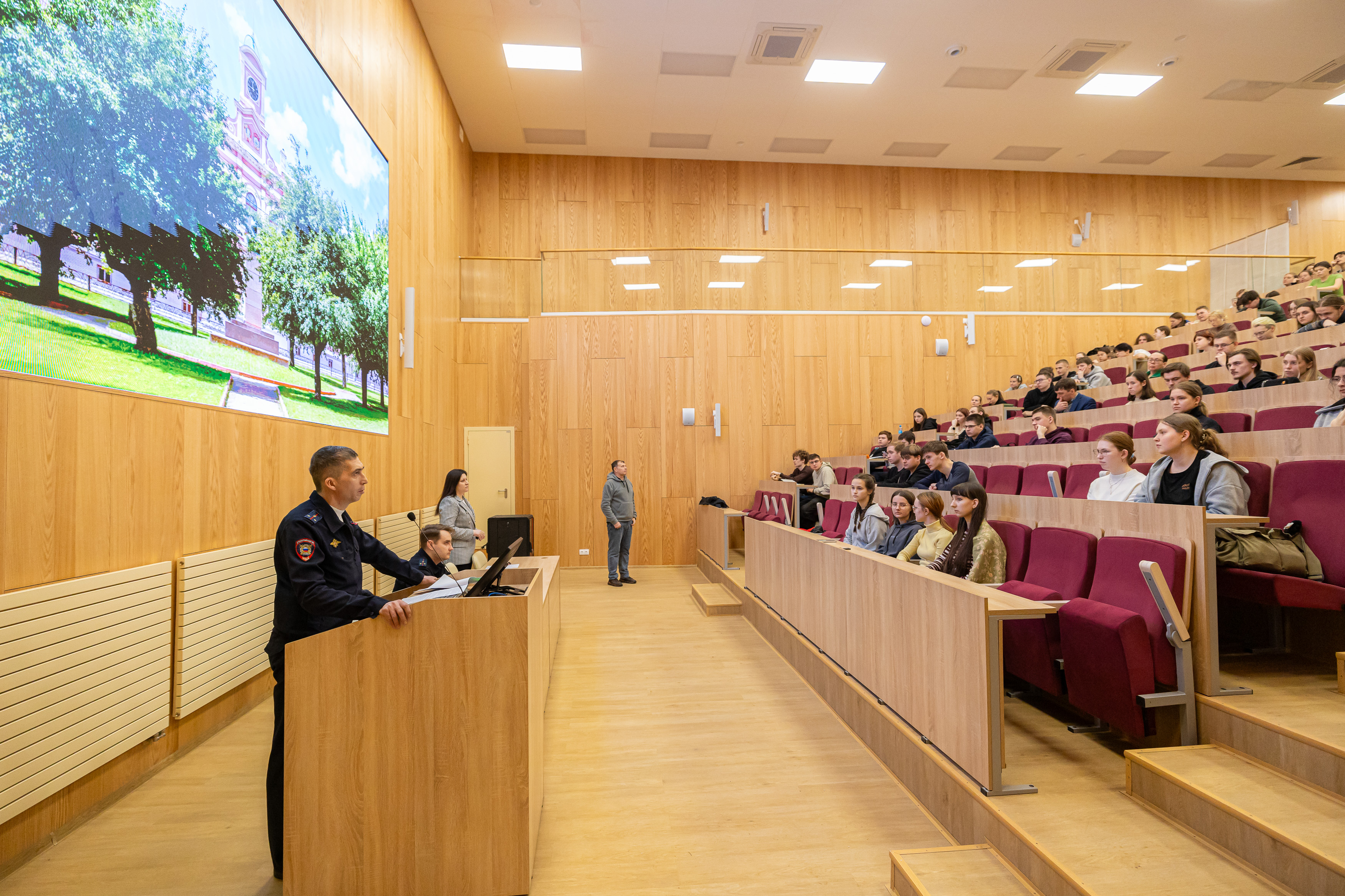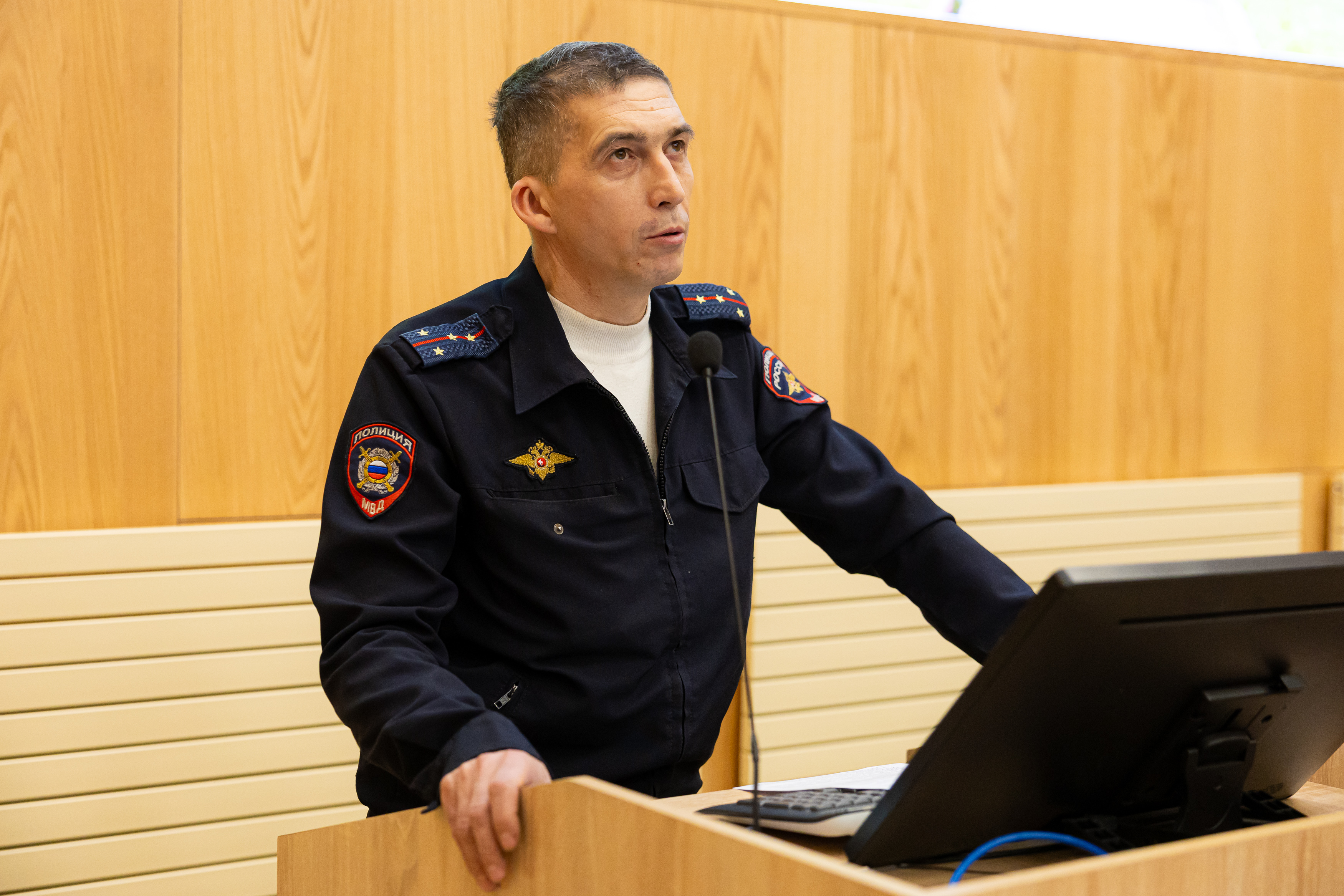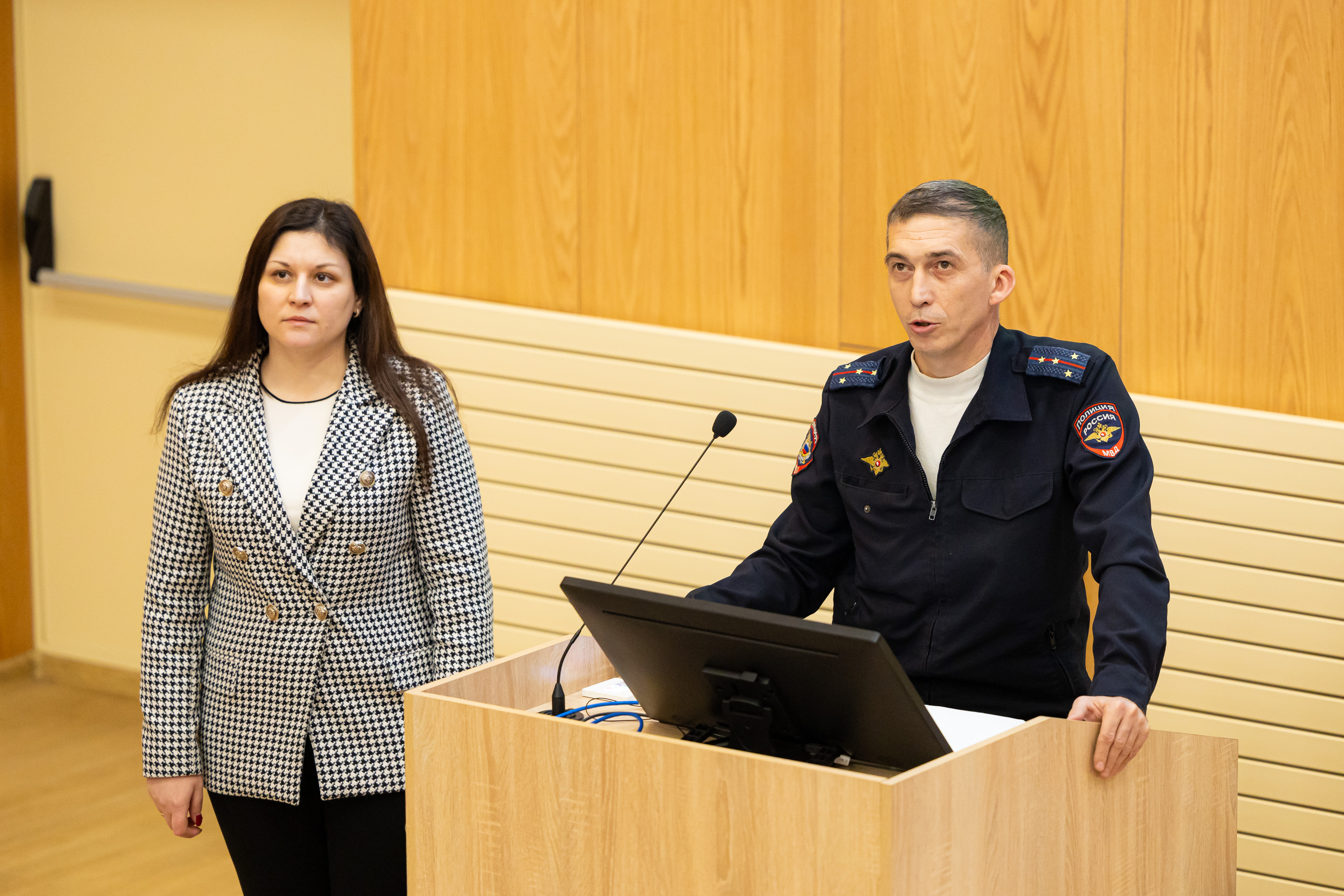 Перед студентами и преподавателями выступили участковый капитан полиции Михаил Попов и заместитель начальника отдела участковых, старший лейтенант полиции Максим Федосейкин. Они рассказали о правовых аспектах противодействия экстремизму, об основных формах и методах распространения деструктивных идеологий, а также о механизмах защиты молодежи от негативного влияния.
