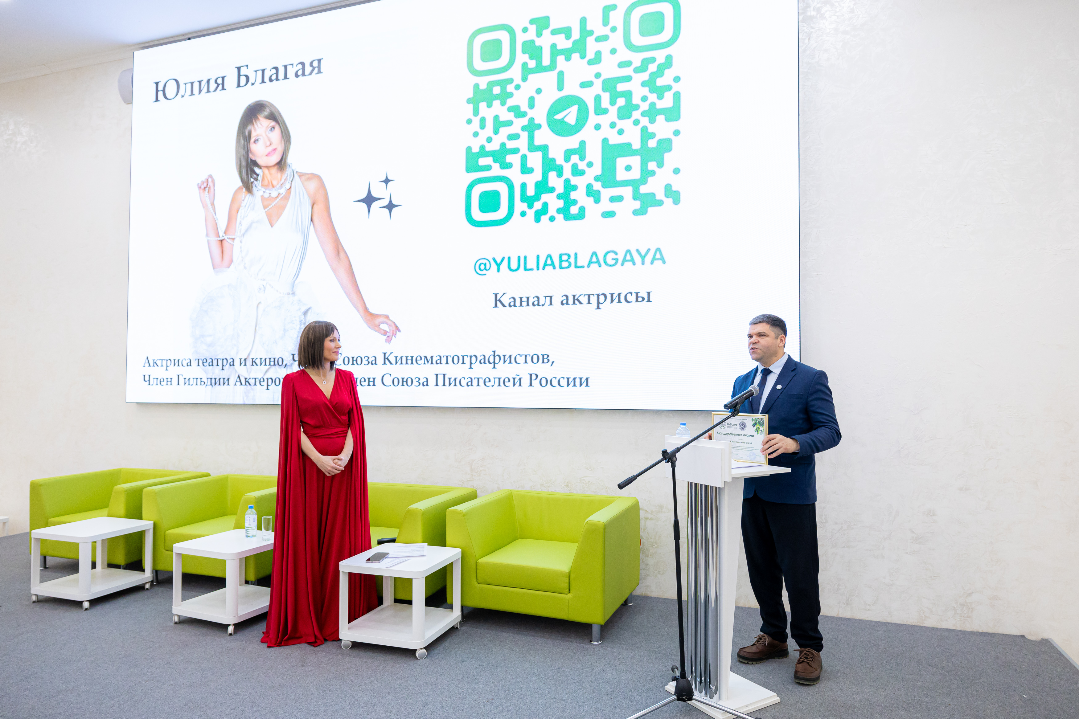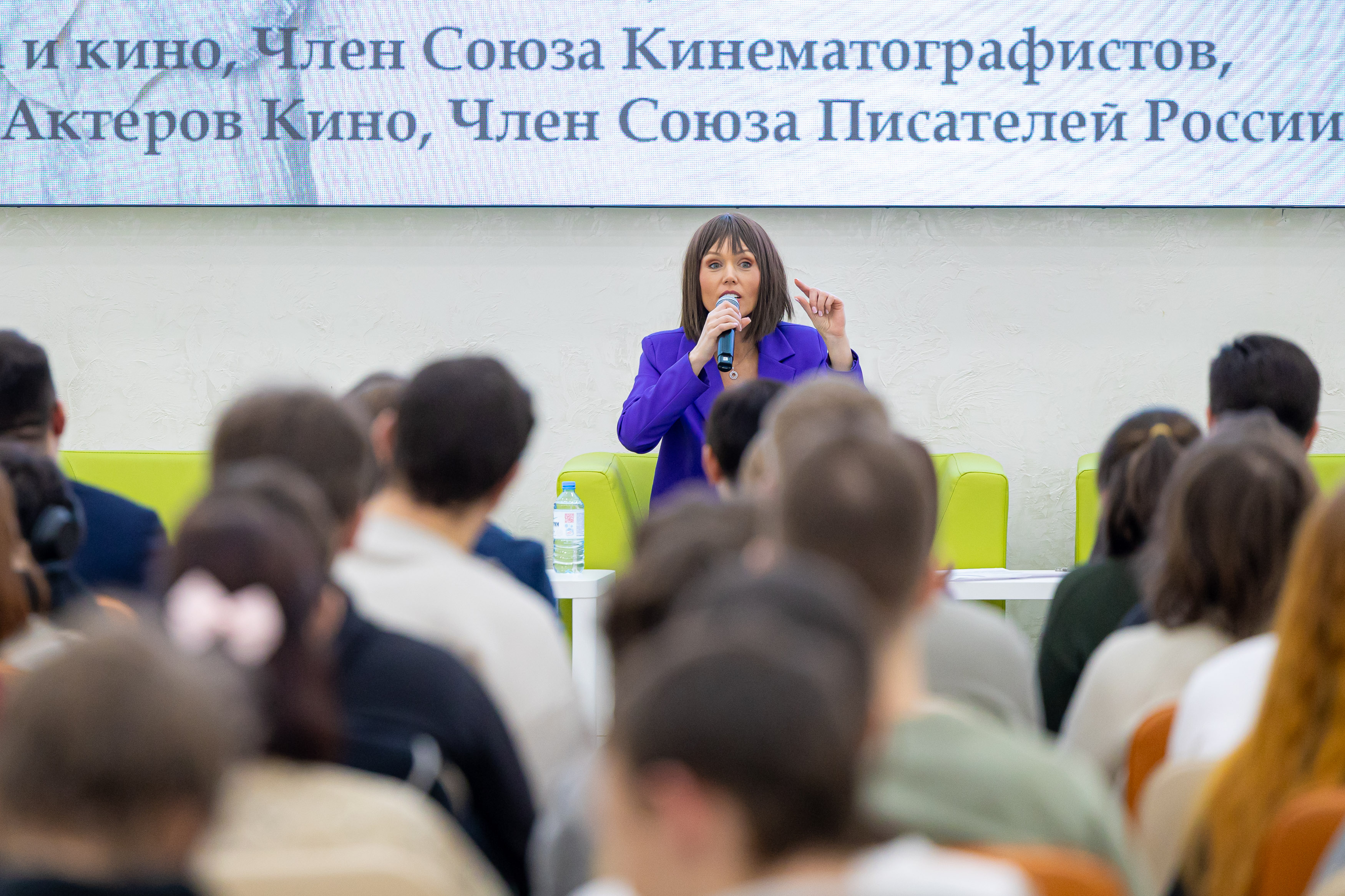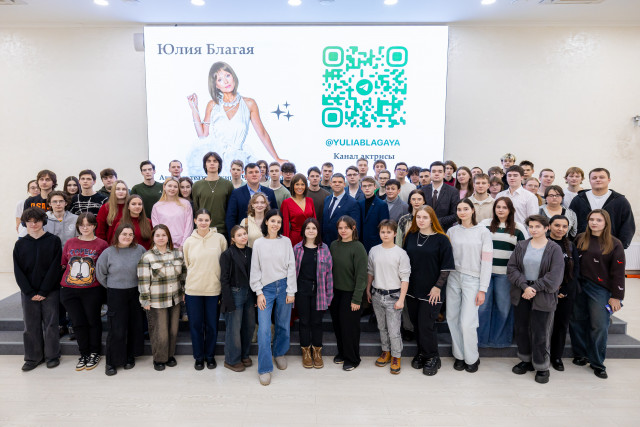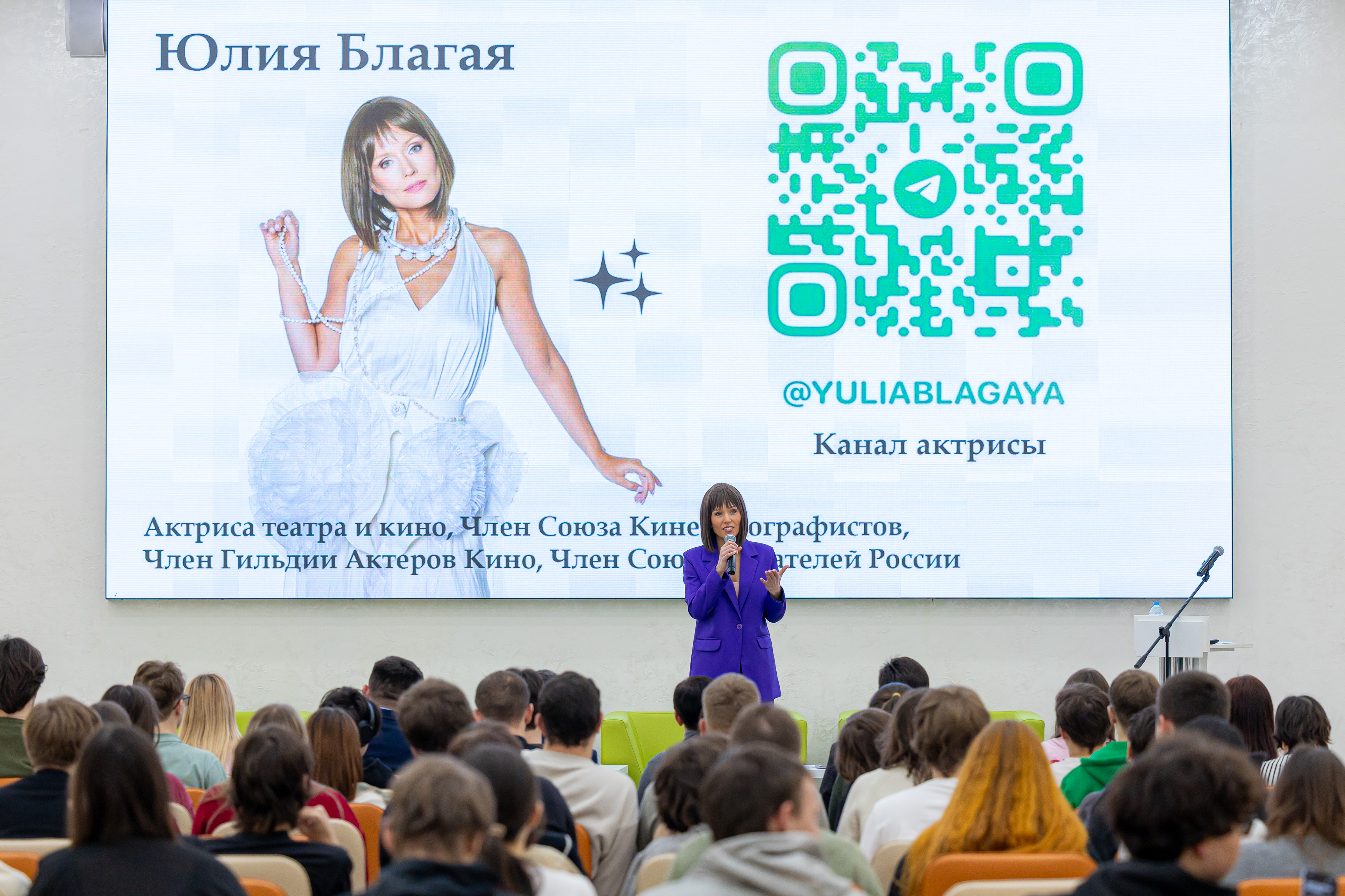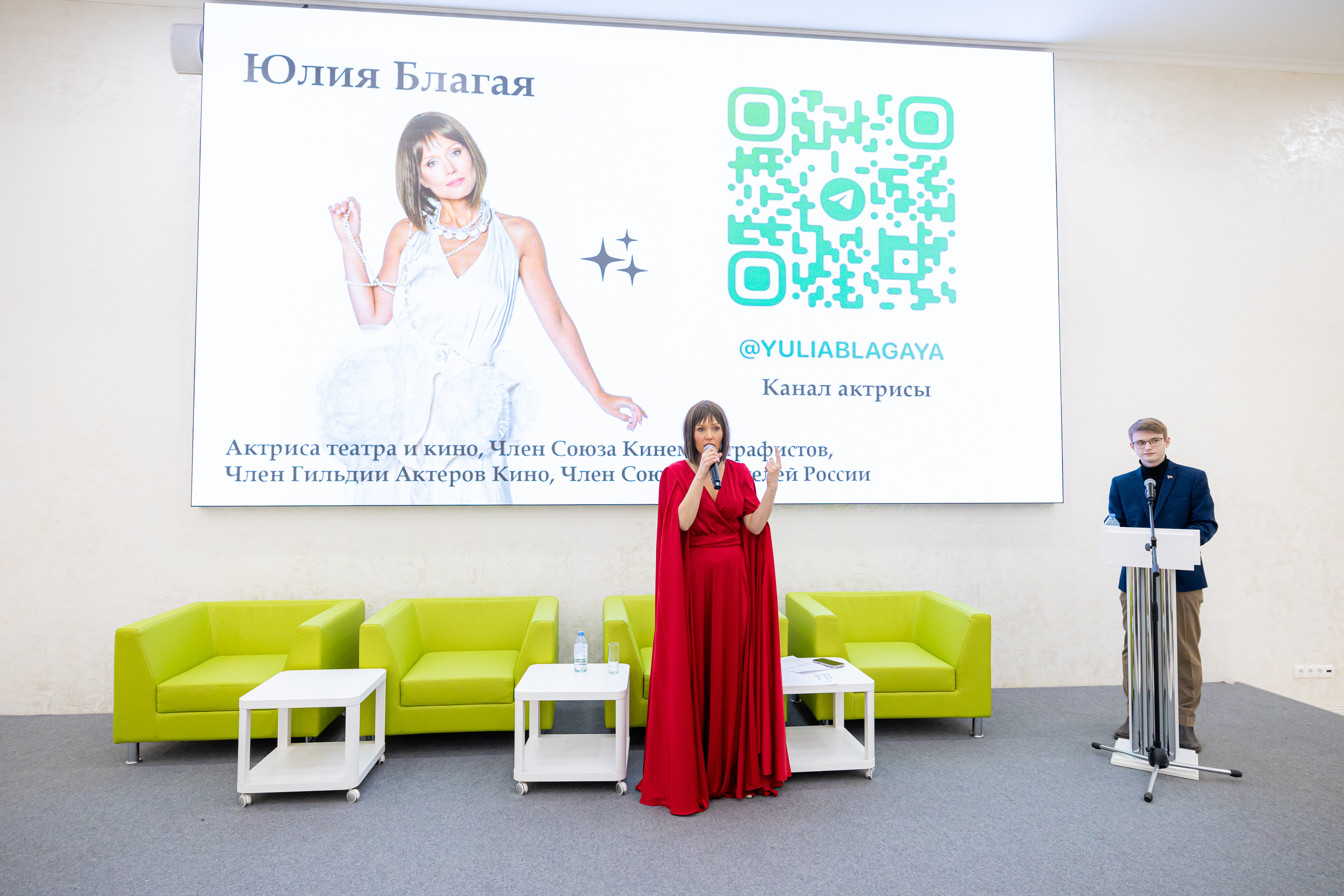 В «Точке кипения» РГАУ - МСХА имени К.А. Тимирязева прошла встреча студентов с актрисой театра и кино, членом Союза кинематографистов России, поэтессой и писательницей Юлией Благой. Мероприятие состоялось в формате «живого микрофона» и собрало студентов, преподавателей, молодых специалистов и участников Патриотического центра «Возрождение».