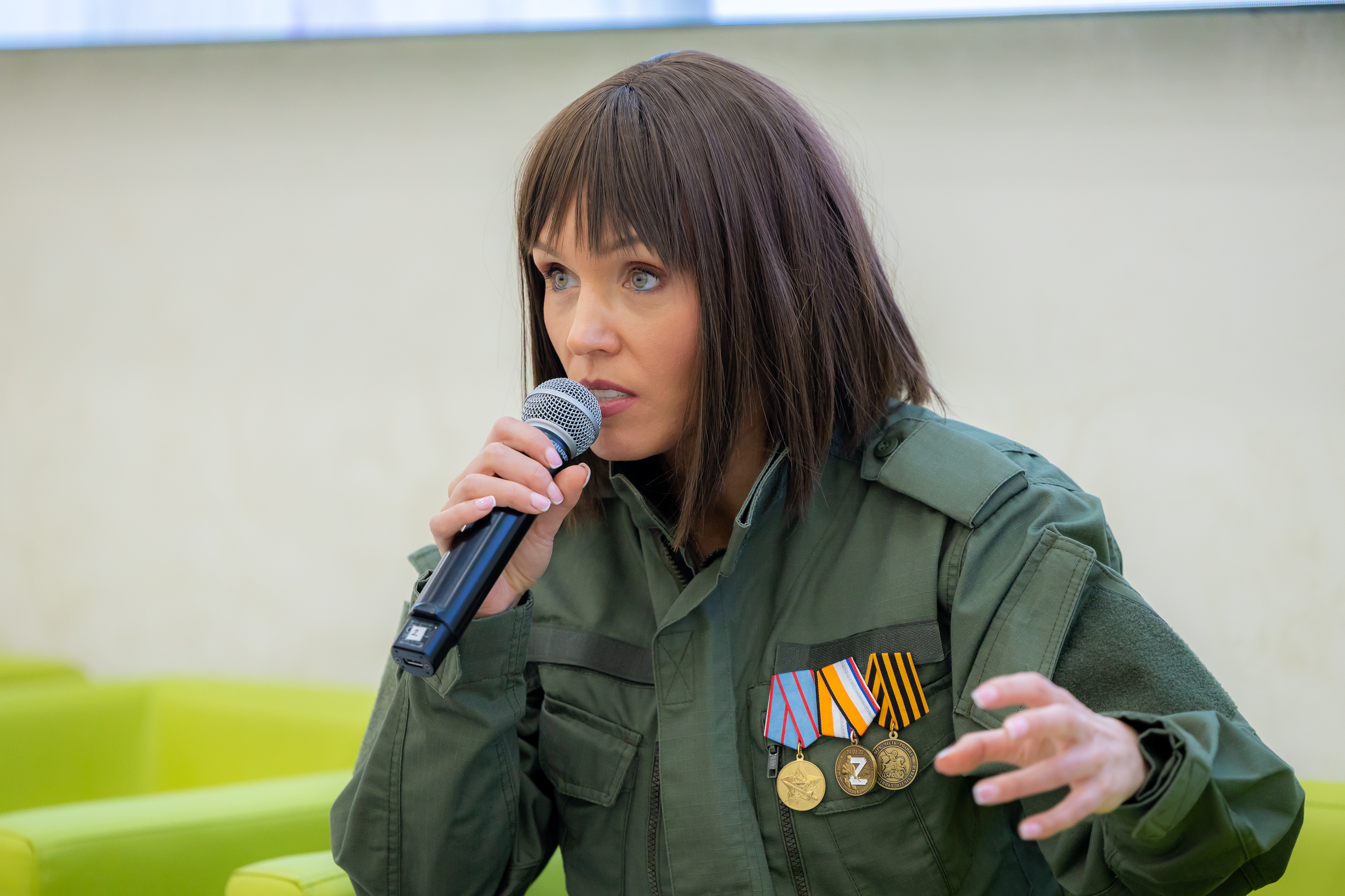 Актриса рассказала о своём жизненном и творческом пути, поделилась историями из профессиональной и общественной деятельности, подчеркнула значимость искусства как источника духовной поддержки и вдохновения. Особое впечатление на участников встречи произвёл рассказ о творческих выступлениях в зоне проведения спецоперации.