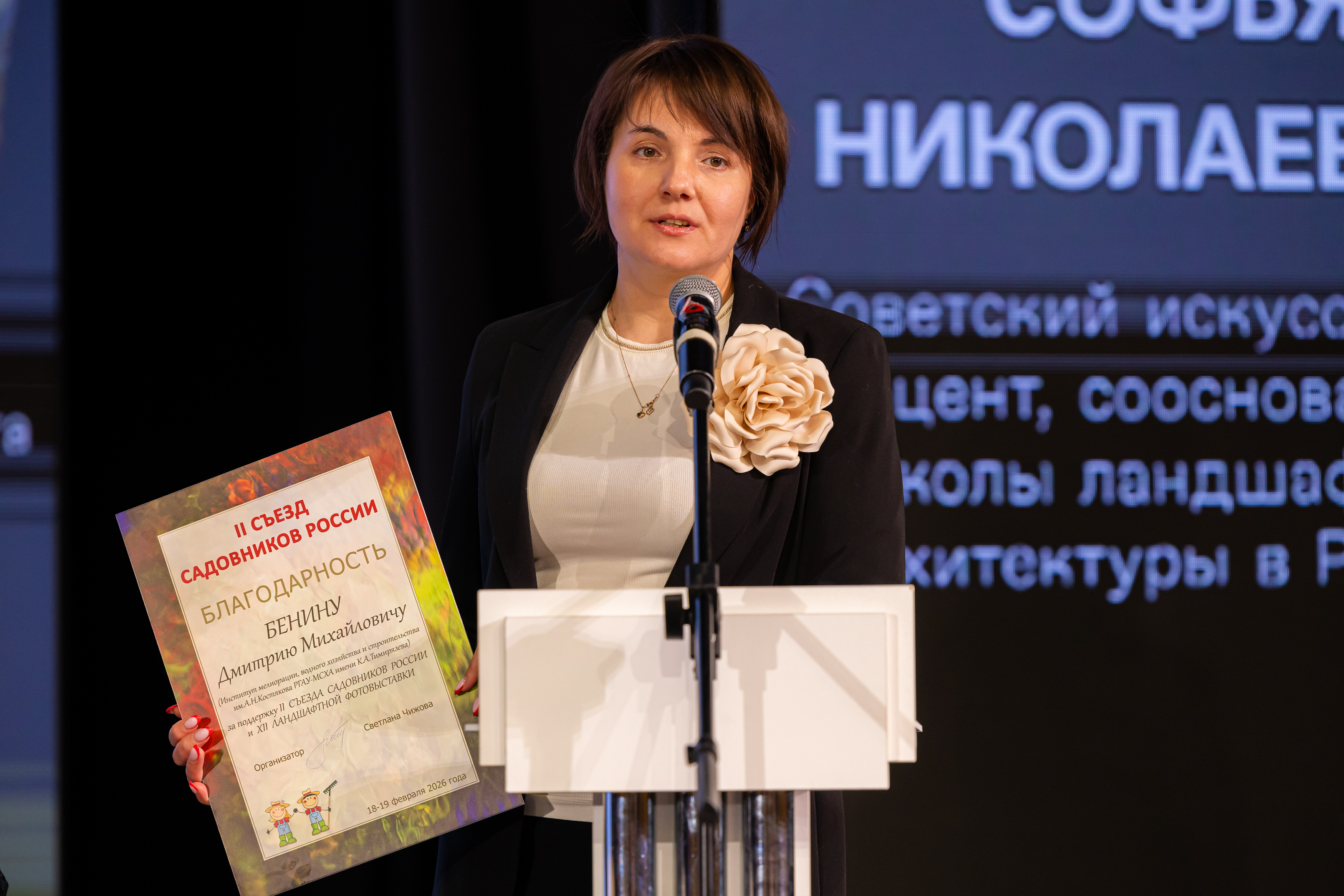 Особое внимание участников вызвал доклад Сергея Макарова, доктора сельскохозяйственных наук, и.о. директора Института садоводства и ландшафтной архитектуры РГАУ-МСХА имени К.А. Тимирязева. Выступление было посвящено современному образованию в сфере садоводства и роли института в подготовке высококвалифицированных кадров.