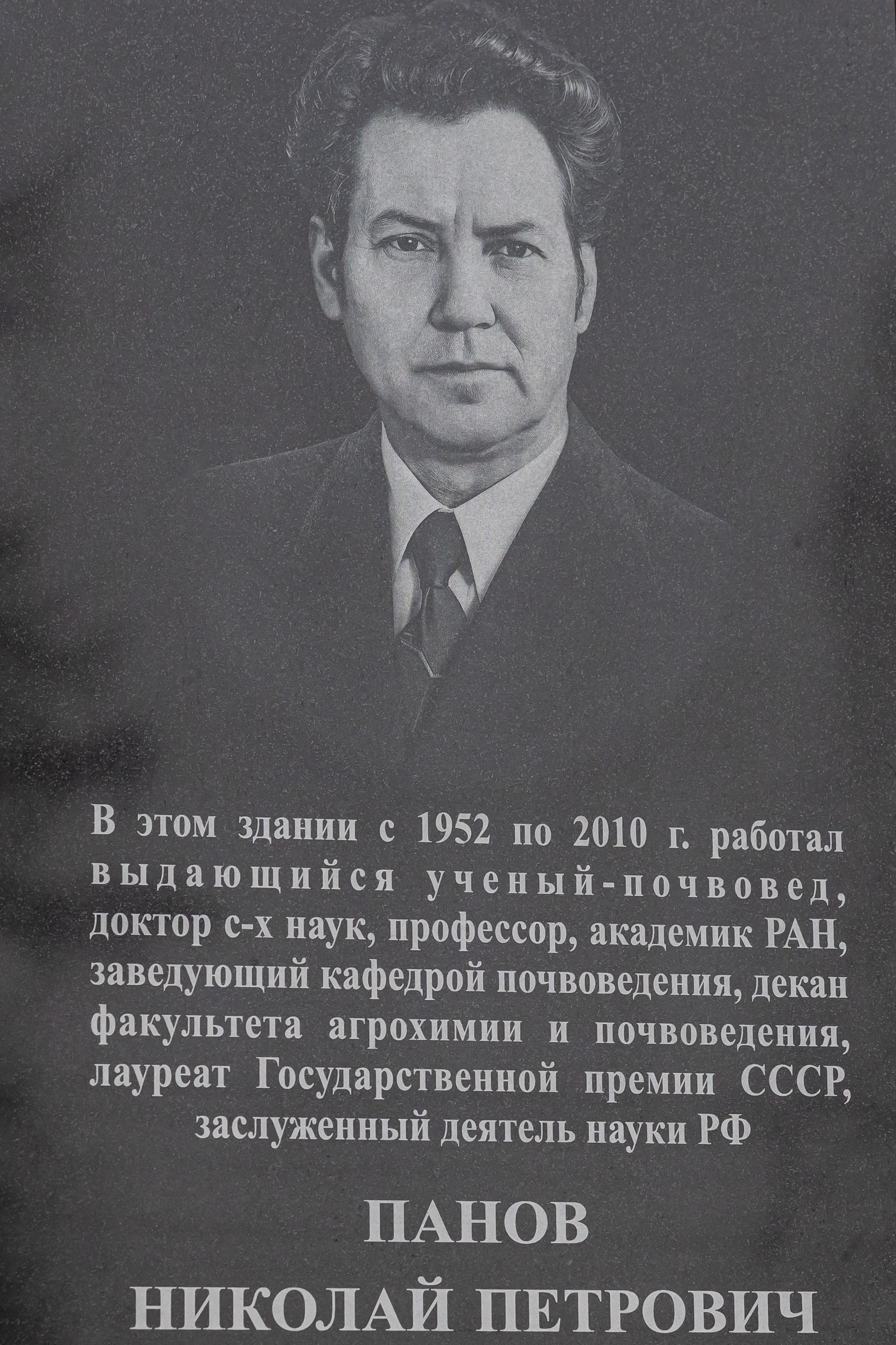 Николай Петрович Панов – учёный с мировым именем, академик ВАСХНИЛ, РАСХН и РАН, доктор сельскохозяйственных наук, профессор, заслуженный деятель науки Российской Федерации. Выпускник Тимирязевки, он посвятил родному вузу всю свою жизнь, пройдя путь от ассистента до заведующего кафедрой почвоведения и декана факультета агрохимии и почвоведения. Он является автором 430 научных работ, включая фундаментальные исследования по генезису, классификации и мелиорации почв, а также ключевые учебники. Под его руководством было подготовлено 40 кандидатов и докторов наук, а также более 200 дипломников, чьи имена знакомы сегодня далеко за пределами России.