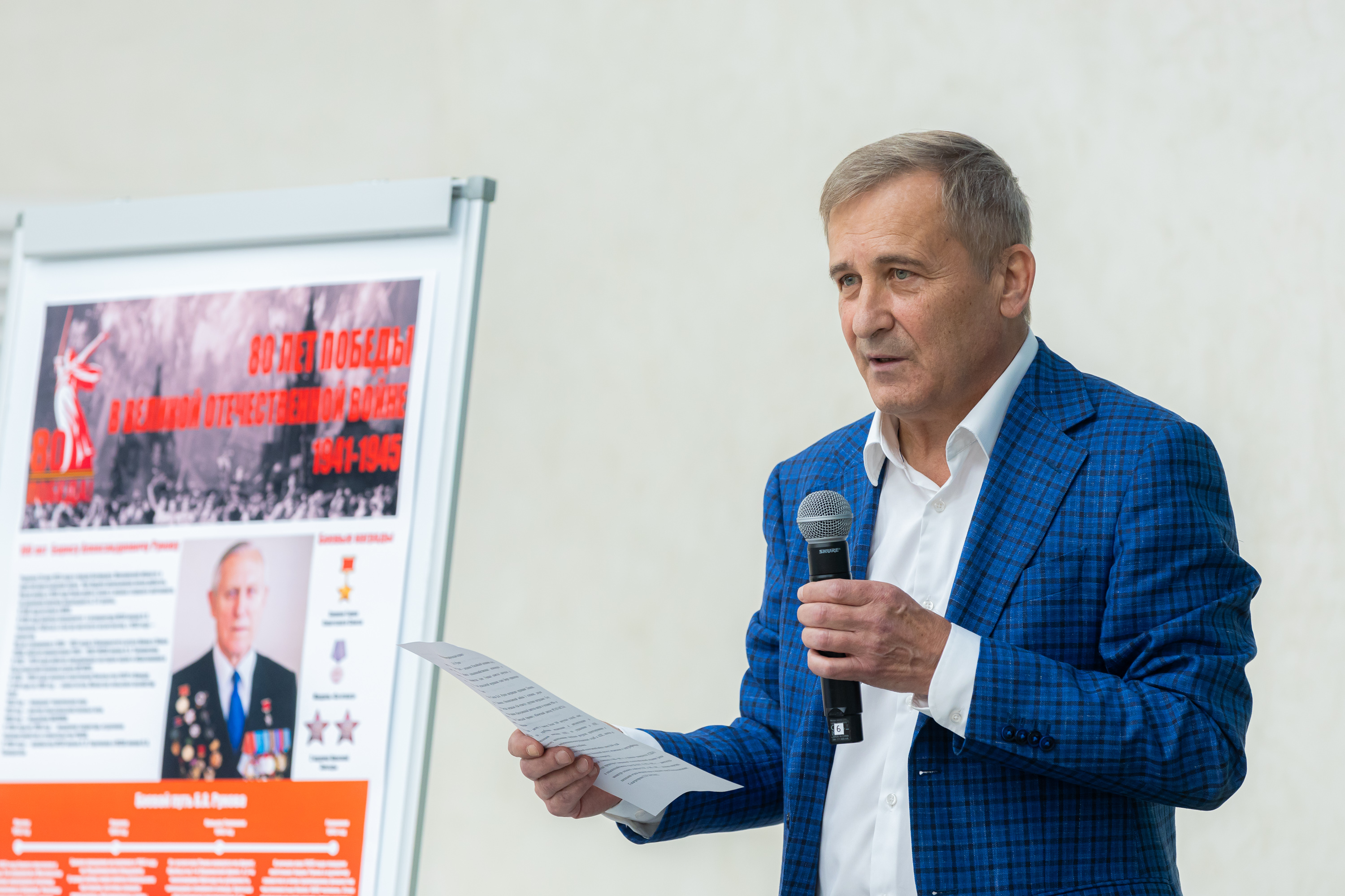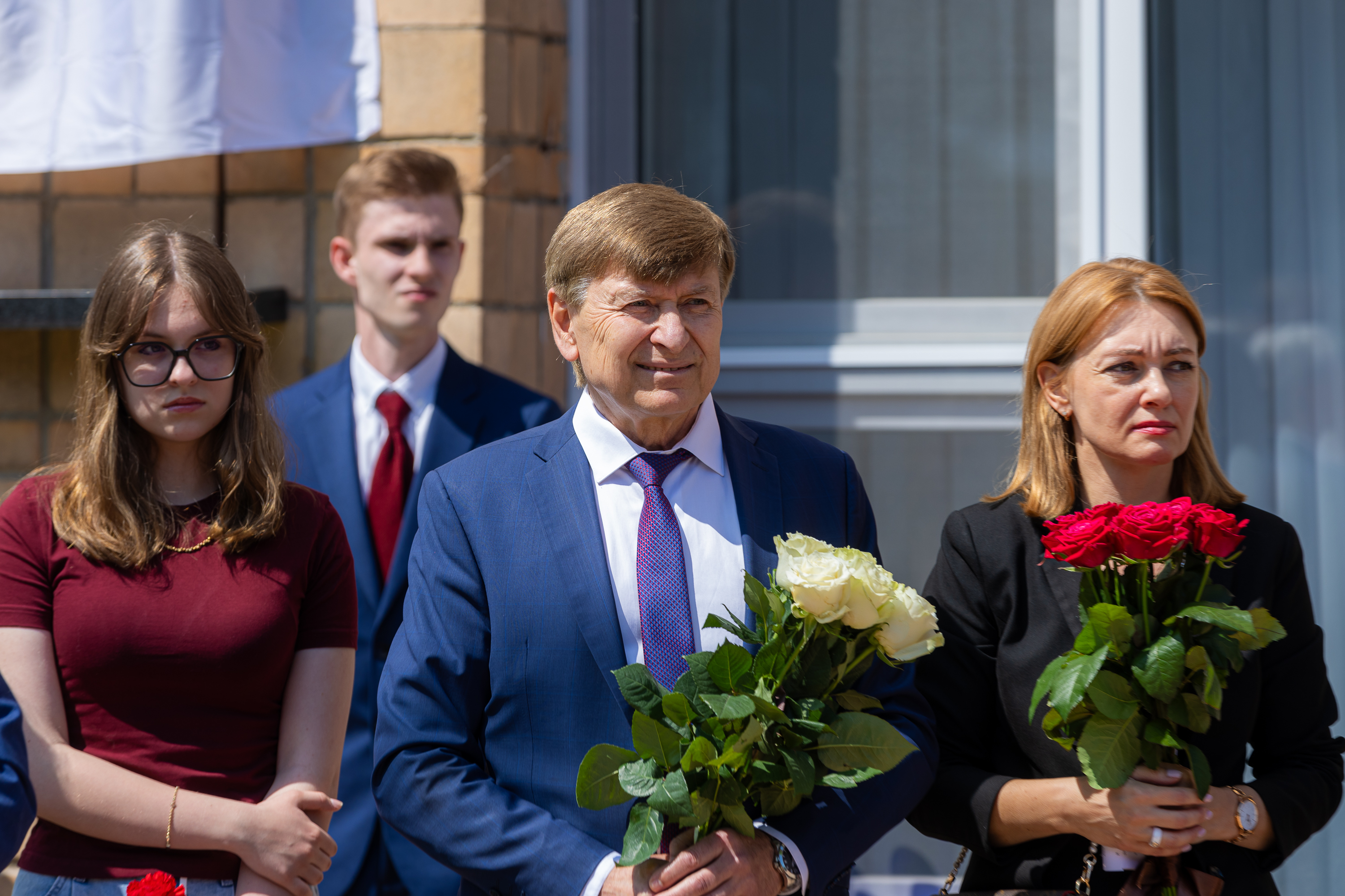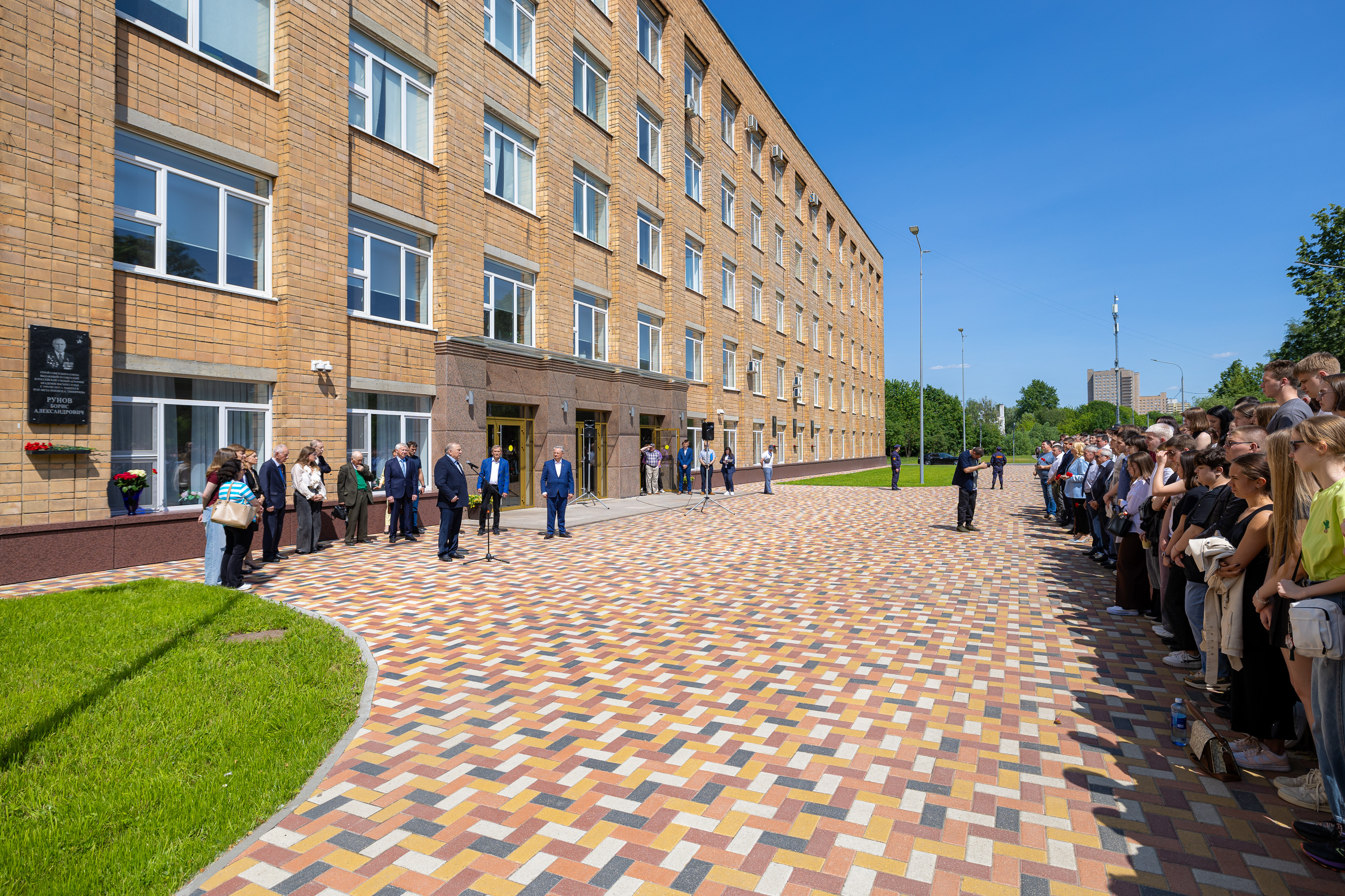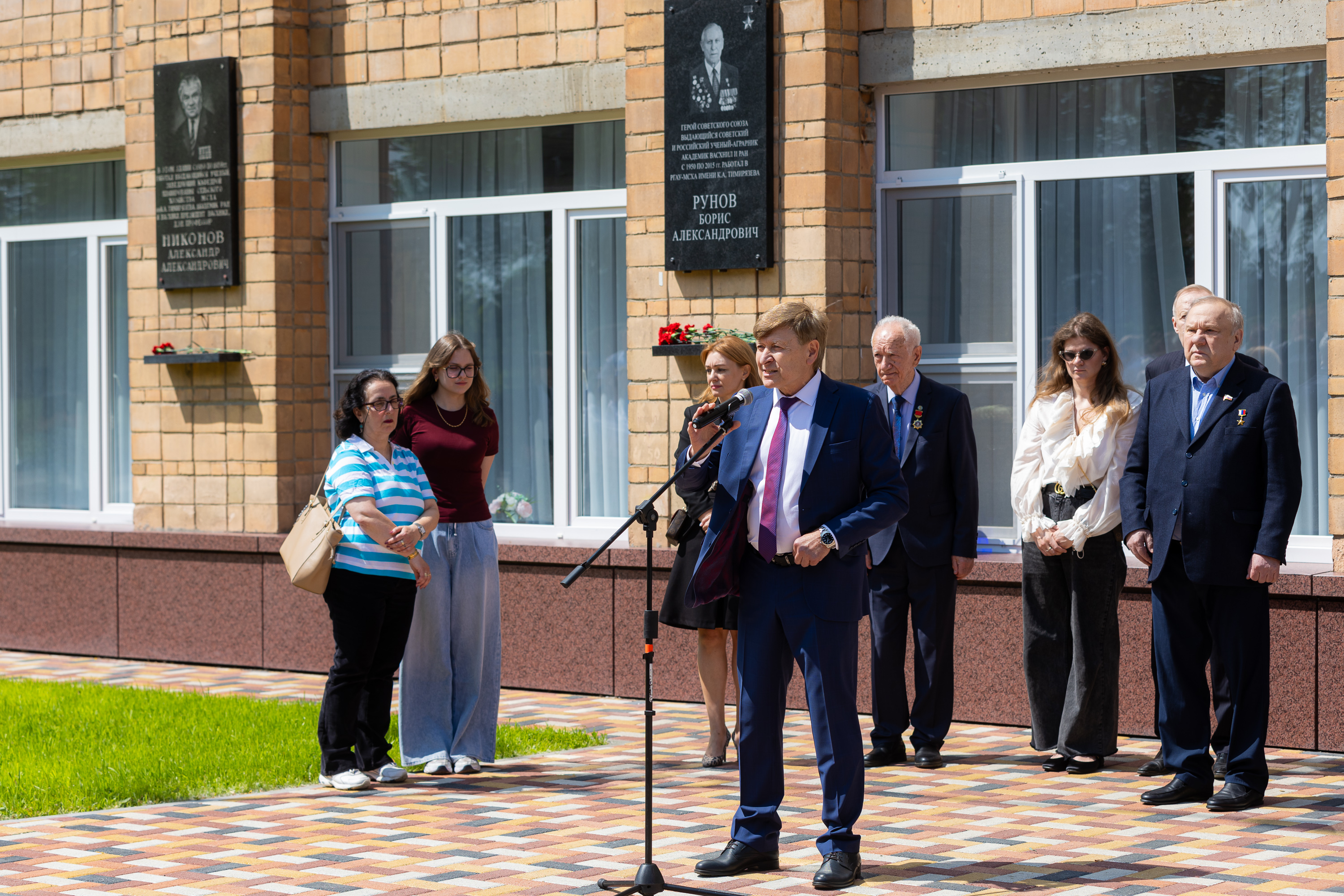 03 Июнь / 2025На торжественном открытии мемориальной доски, установленной в честь Героя Советского Союза, присутствовали студенты, преподаватели и почётные гости. В числе приглашённых были ректор РГАУ-МСХА имени К.А. Тимирязева, академик РАН, профессор Владимир Иванович Трухачев; депутат Государственной Думы, генерал-полковник ВС РФ, Герой Российской Федерации Владимир Анатольевич Шаманов; академик-секретарь отделения сельскохозяйственных наук РАН Яков Петрович Лобачевский и другие почётные гости, включая сына Бориса Александровича Валерия Борисовича Рунова.