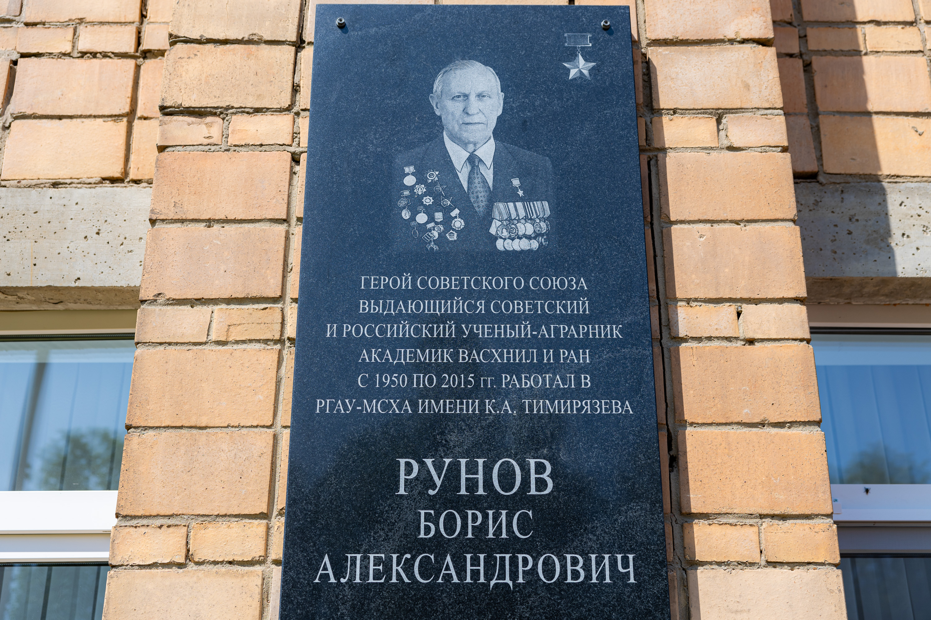 Имя Бориса Александровича Рунова навсегда вписано золотыми буквами в историю Российского государственного аграрного университета — МСХА имени К.А. Тимирязева. Его жизненный путь стал примером самоотверженности, патриотизма и преданности науке и Отечеству, оставив глубокий след в истории Академии и в целом российском агропромышленном комплексе.
