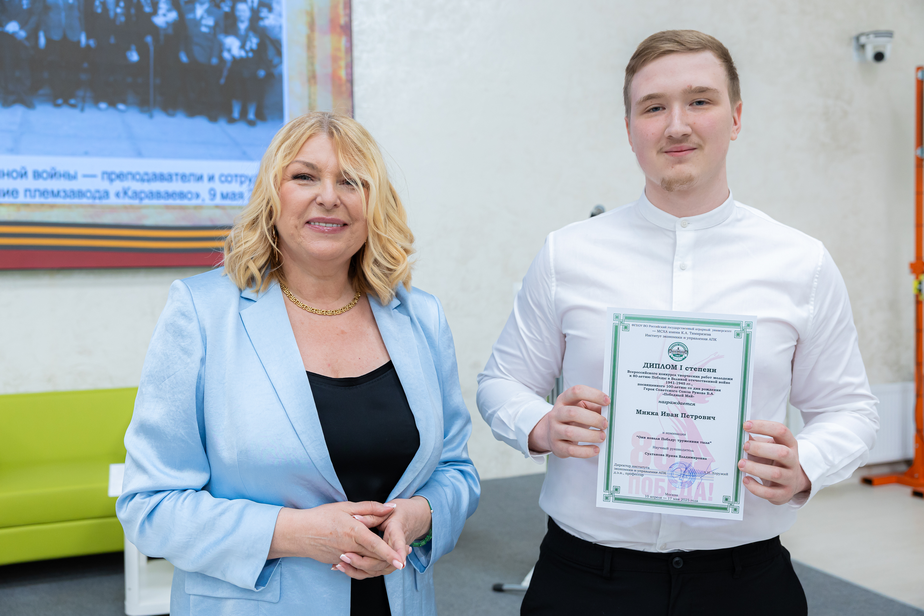 В завершении конференции наградили студентов, победителей Всероссийского конкурса творческих работ молодежи к 80-летию Победы в Великой Отечественной войне, посвященному 100-летию со дня рождения Героя Советского Союза Б.А. Рунова "Победный Май".