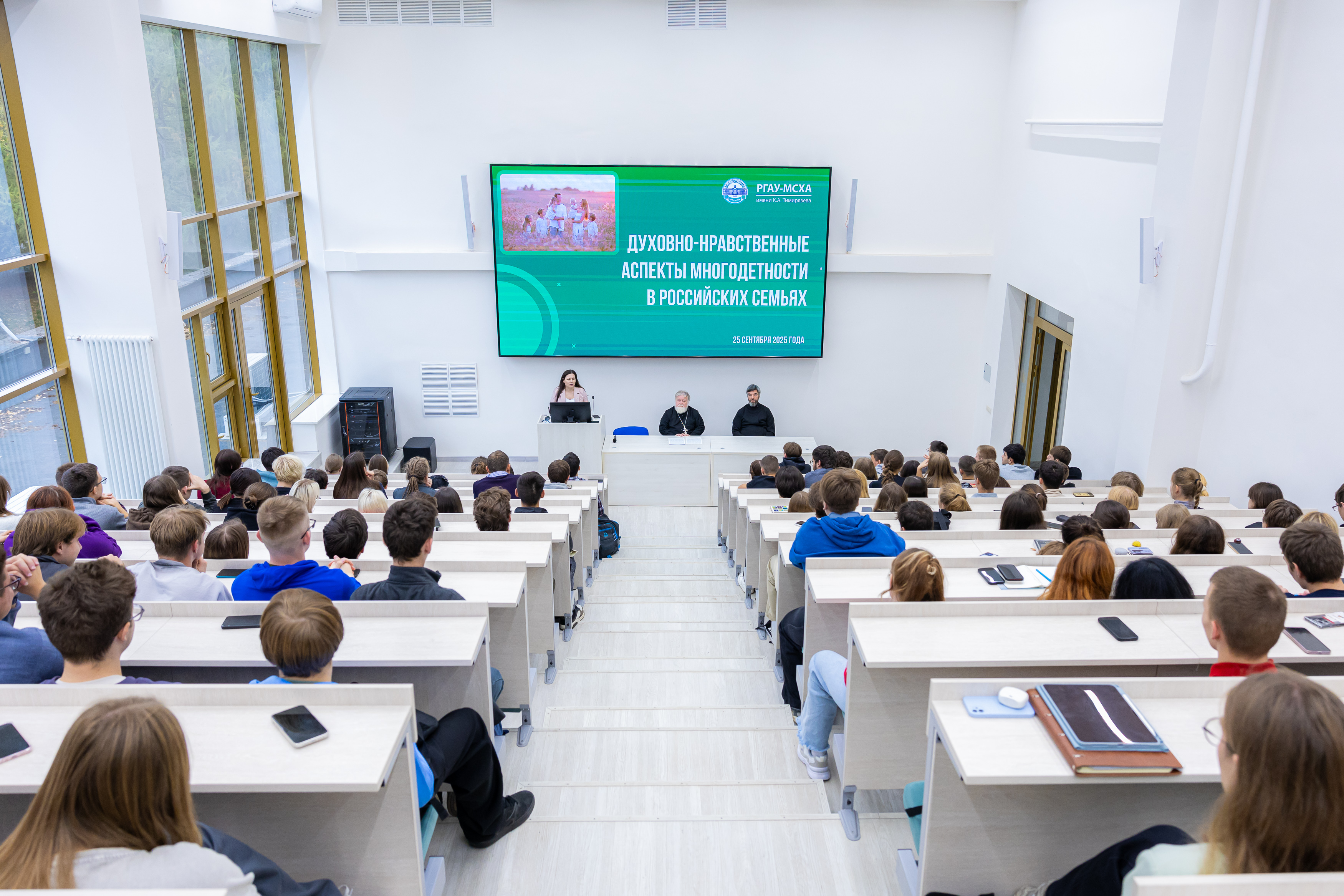 В аудитории присутствовали студенты всех институтов и колледжа Тимирязевской академии, включая студенческие семьи и семейных студентов. Среди них были и те, кто воспитывался в семье, где по 7-8 детей, что сделало дискуссию особенно искренней и информативной.