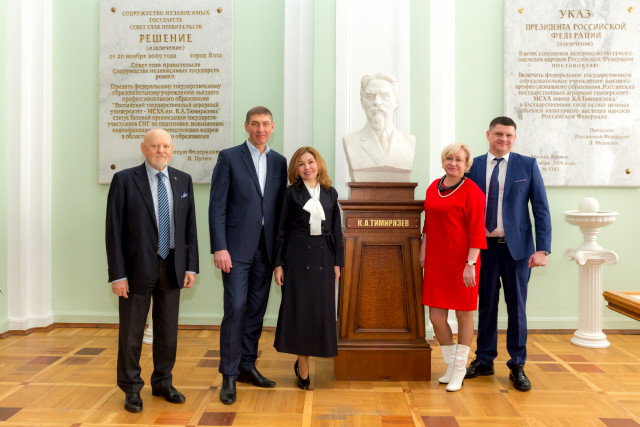 В беседе приняли участие первый проректор Университета Ярослав Воронцов, проректор по административно-хозяйственной работе РГАУ – МСХА Елена Шестакова, академик РАН, профессор Владимир Баутин.